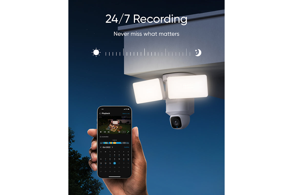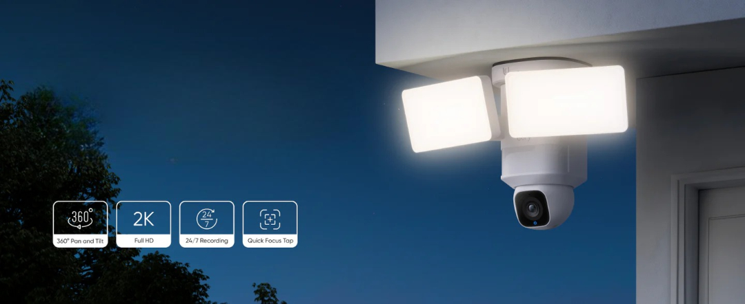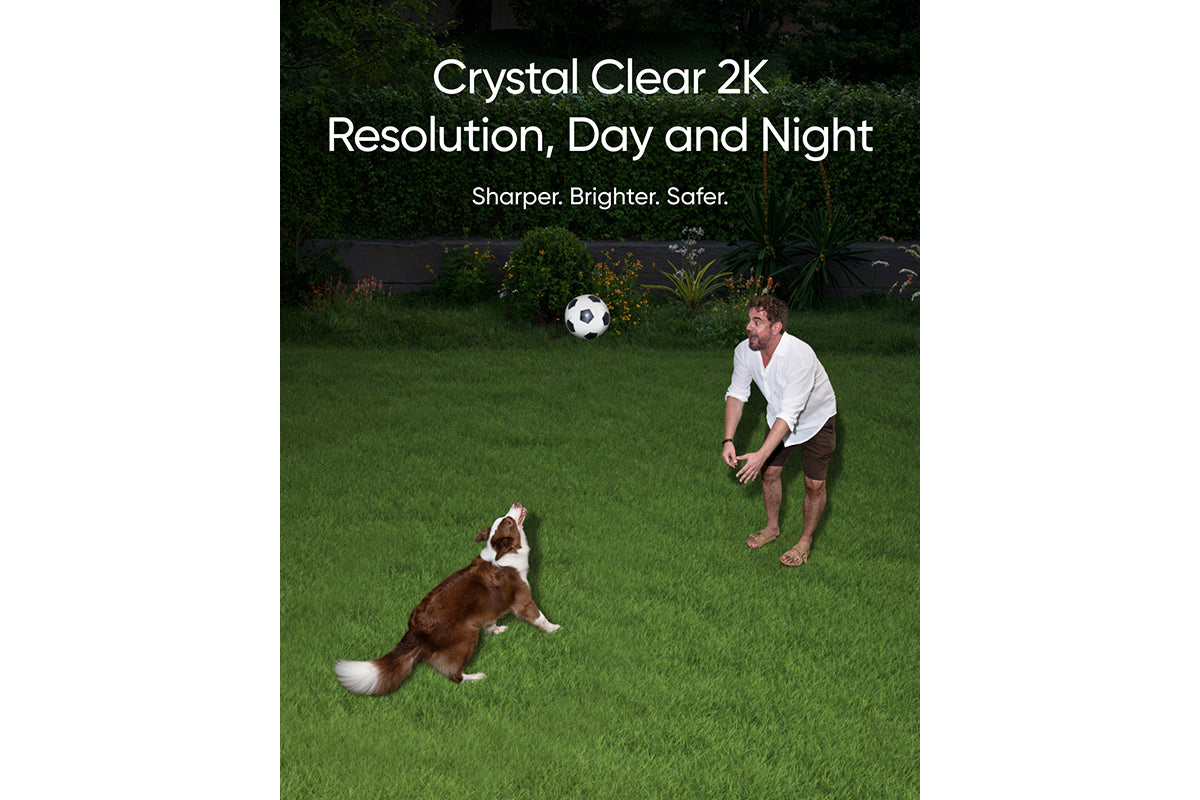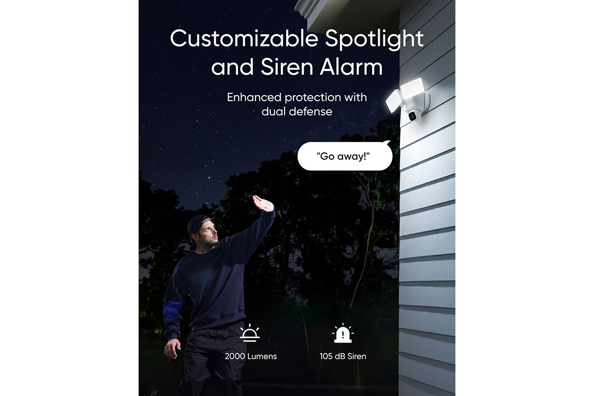 Record and view footage in stunning 2K HD resolution, day or night. The 2,000-lumen motion-activated LED floodlights ensure full-color visibility even in darkness.