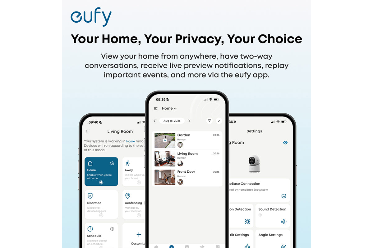 Communicate with anyone outside in real-time via instant notifications and clear audio. Speak and listen through the camera using the eufy app.