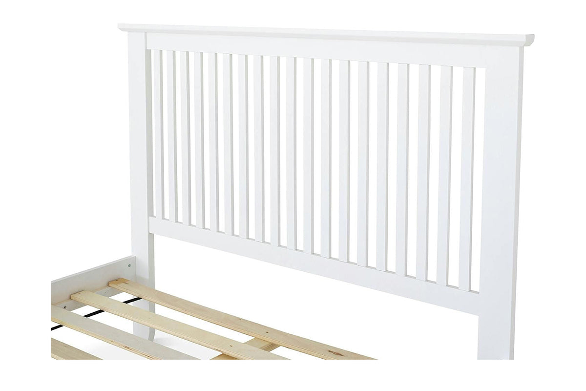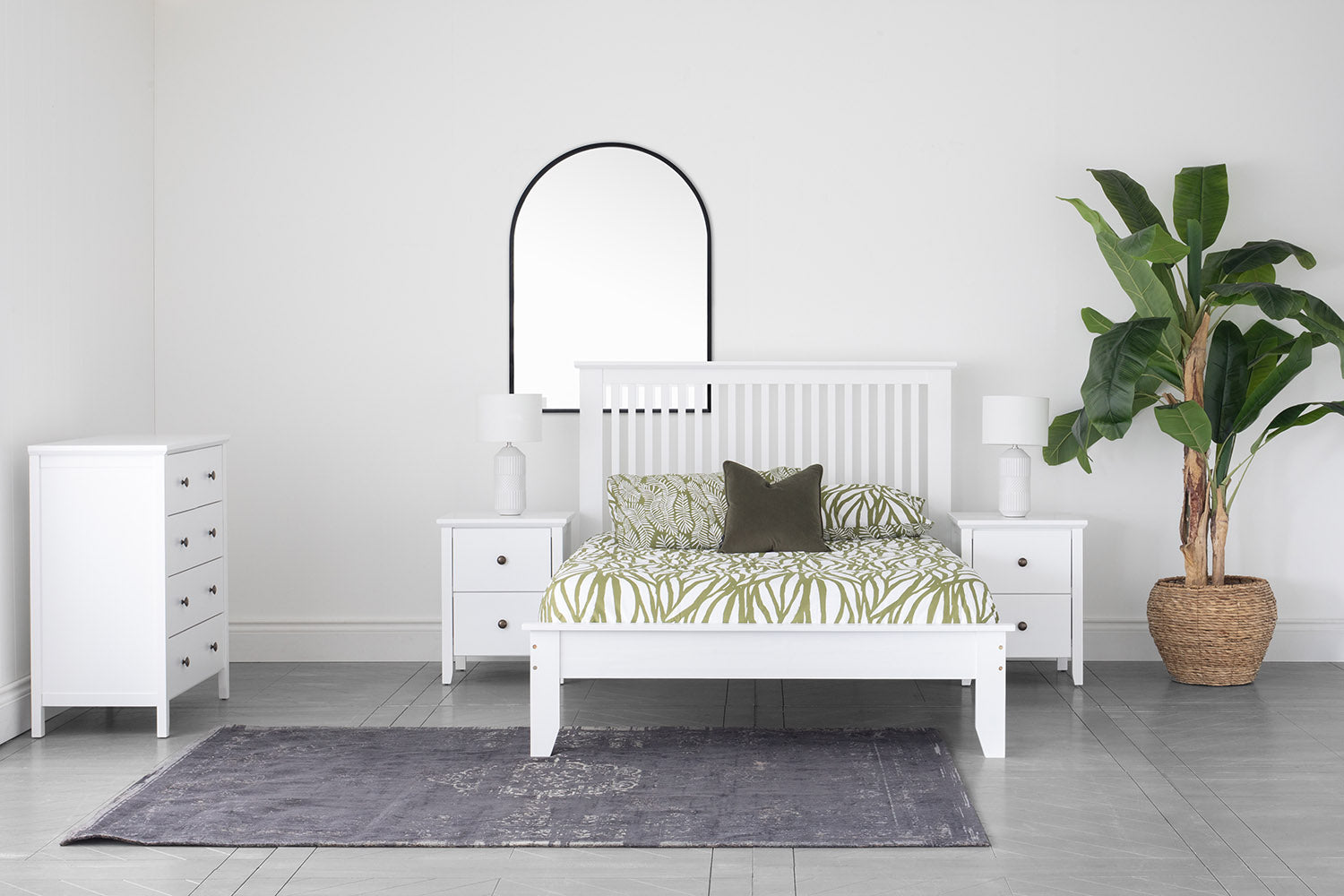Curl up in comfort and style with the Ezra bedframe, a stunning item that combines traditional comfort with contemporary design. Featuring a classic slatted headboard ideal for resting against while reading before bed, this frame also includes a slatted base with centre support and centre leg to ensure maximum support. Available in multiple sizes and two different colours so you’re sure to find the right fit for your home.