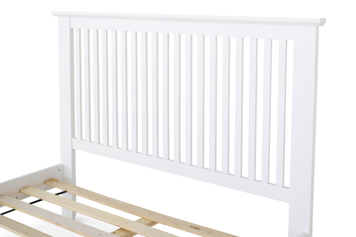 Curl up in comfort and style with the Ezra bedframe, a stunning item that combines traditional comfort with contemporary design. Featuring a classic slatted headboard ideal for resting against while reading before bed, this frame also includes a slatted base with centre support and centre leg to ensure maximum support. Available in multiple sizes and two different colours so you’re sure to find the right fit for your home.