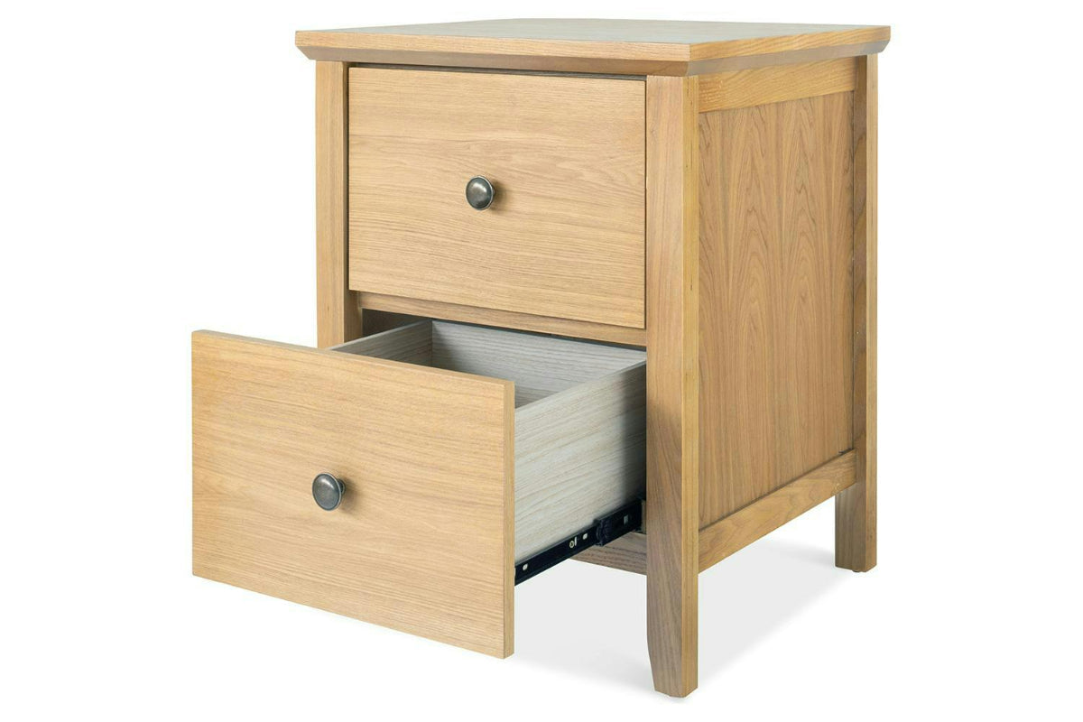 Combining traditional comfort with contemporary design, the Ezra bedside drawer is the perfect piece to complete your bedrooms aesthetic. It features two spacious drawers with ample space for all your bedroom essentials, and an open top ideal for a bedside lamp or keeping your phone and other items close to hand. It’s finished with the sleek black metal handles that gives the drawers that modern edge.