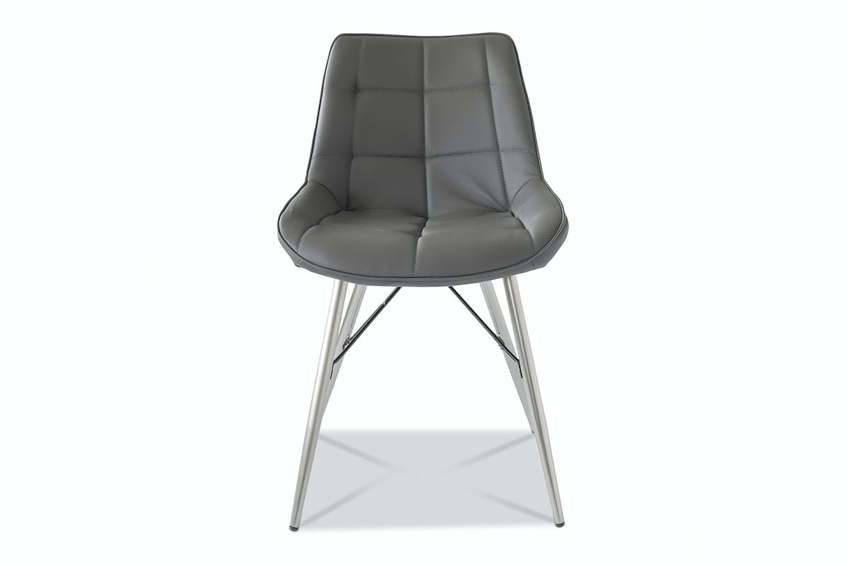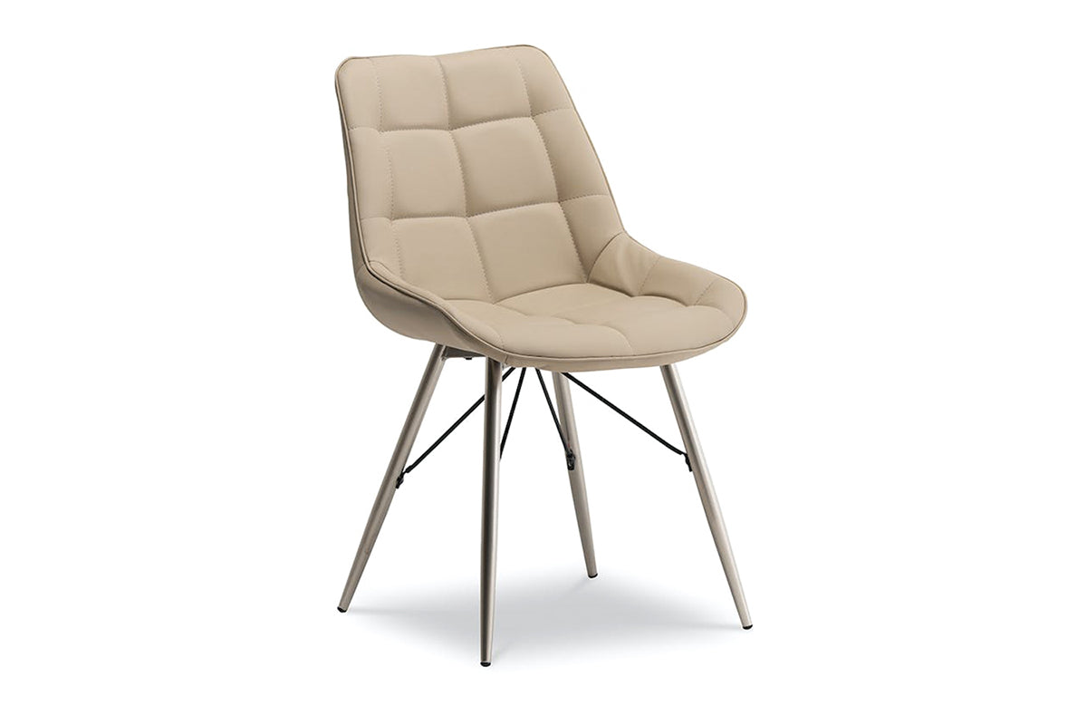 Sit back and enjoy your meal in one of the most comfortable dining chairs you’ll ever find. With elegant imitation leather upholstery, a relaxing curved back design, brushed steel legs and a unique overall stitching pattern, the chair keeps you comfortable as long as you’re sitting.