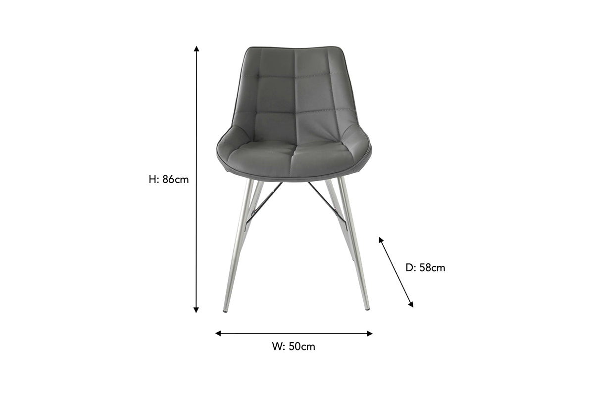 Sit back and enjoy your meal in one of the most comfortable dining chairs you’ll ever find. With elegant imitation leather upholstery, a relaxing curved back design, brushed steel legs and a unique overall stitching pattern, the chair keeps you comfortable as long as you’re sitting.