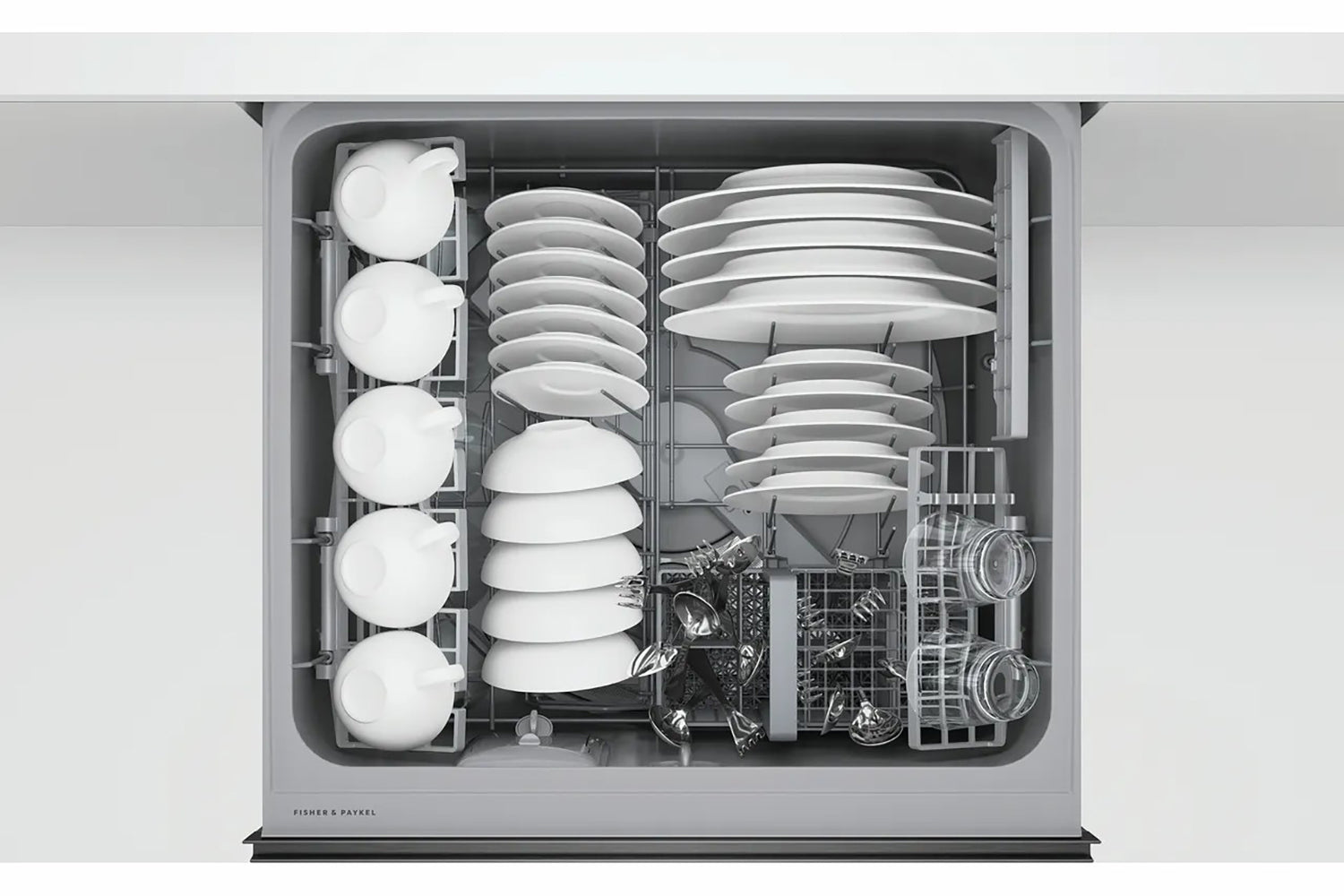 Wash one drawer while you load the other, with room in each drawer for full-size dinner plates.