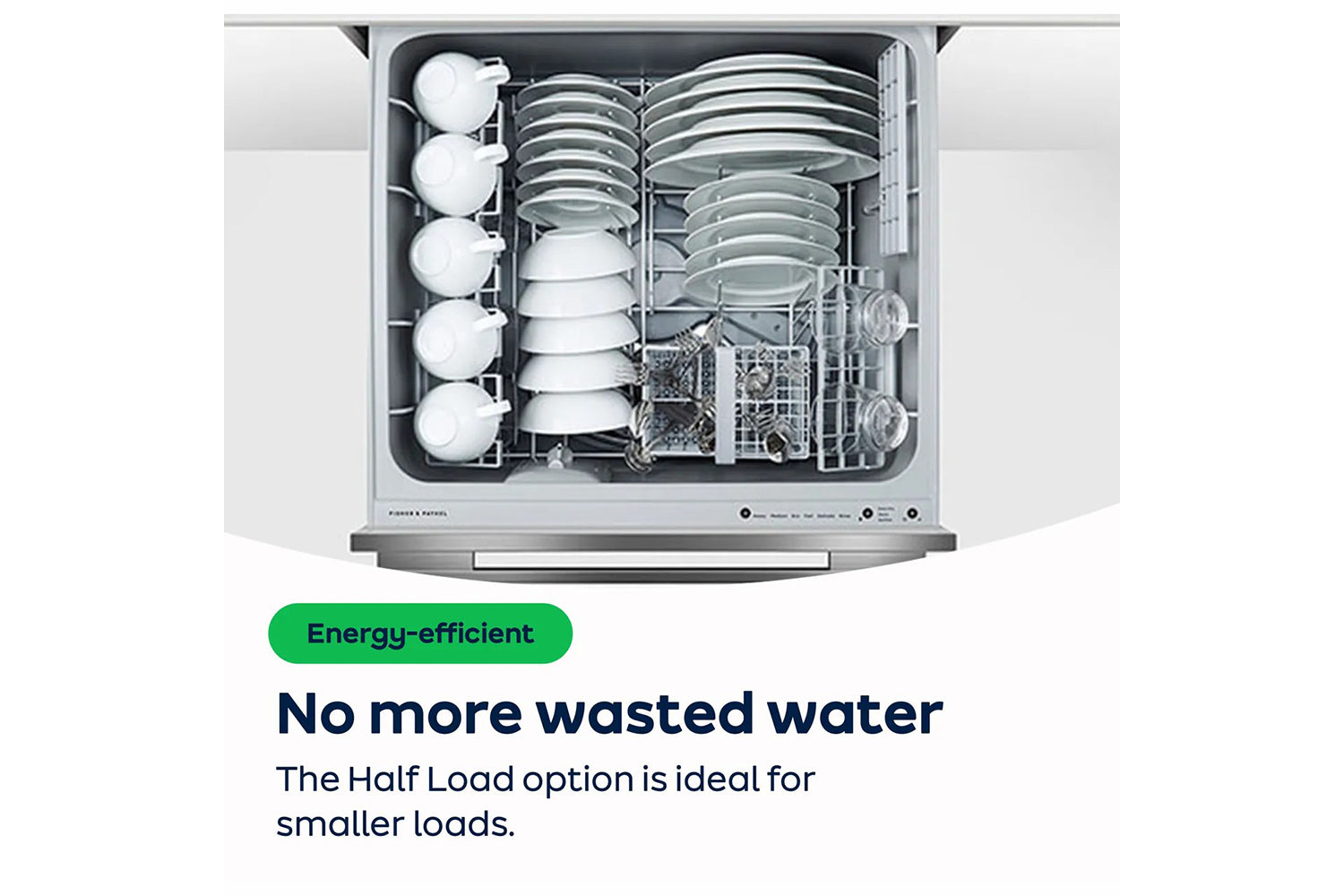 Each drawer holds a true half load for small, fast washing that won't waste water. Both drawers operate independently so two wash cycles can operate simultaneously to allow for varying loads.