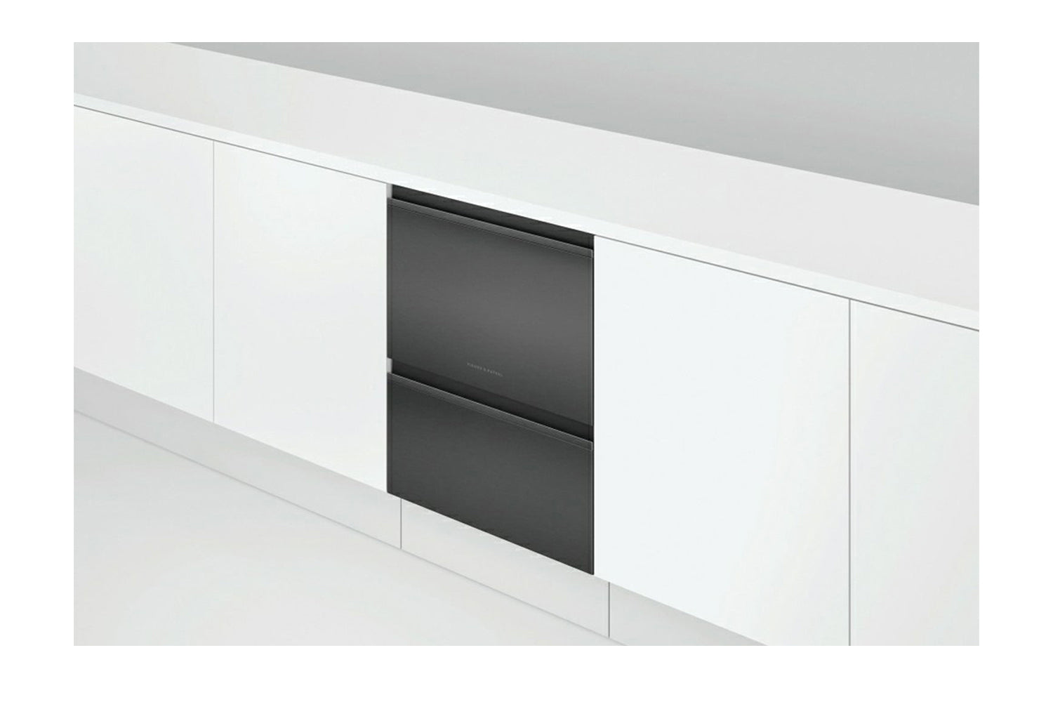 Fisher & Paykel built-under Dishdrawer dishwashers are installed flush under your benchtop with the option of a custom kickstrip, ensuring minimal gaps. Designed to match the Fisher & Paykel family of kitchen appliances with recessed handles for a streamlined look.