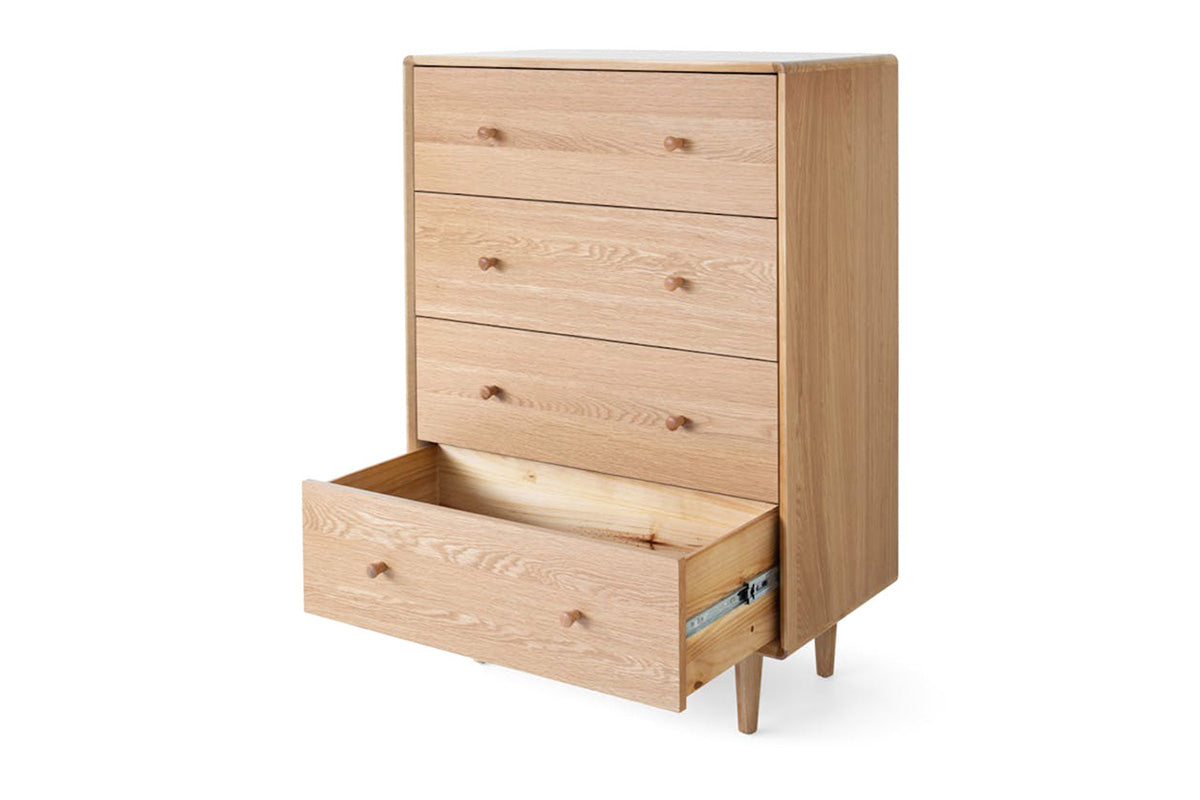 Add a classic touch to your bedroom, with the mid-century modern 4-drawer wood nightstand. Crafted from solid pine and manufactured wood, with a painted finish, rooted in traditional style. Features centered knobs on each drawer, stained for a long-lasting finish, and short, tapered legs. Its simple style makes it easy to work with a variety of other styles, including transitional and modern. You'll have easy access to your phone, alarm clock, and lamp by positioning this nightstand next to your bed.