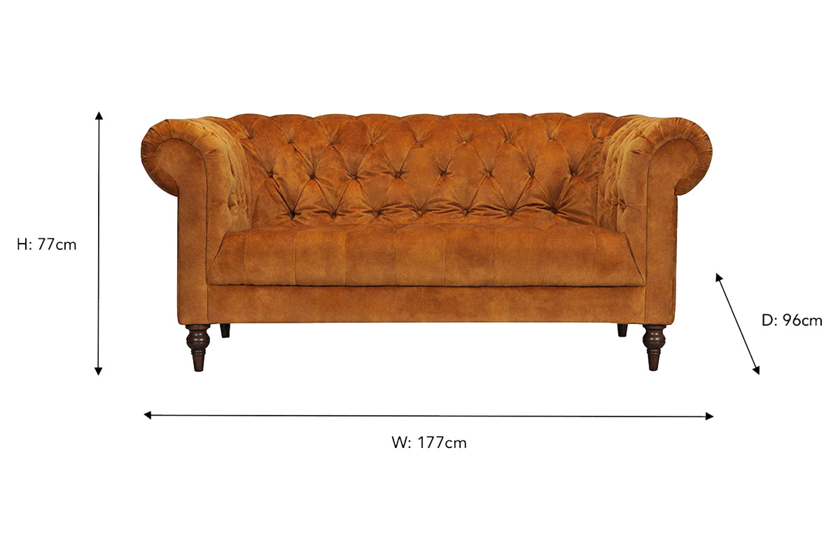 With a choice of smooth velvet fabric or imitation leather upholstery and a wide range of colours on offer, this is seating furniture that you can make in your image. It also boasts a host of stunning design features from head to toe. Tufted button detailing, resplendent scrolling arms, and beautifully carved wooden feet make this collection the epitome of old world elegance, while expert craftsmanship, a solid wood frame, no-sag springs, and foam filled cushions ensure modern day comfort.