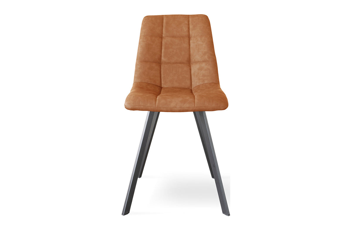 This contemporary chair sits atop slim black metal legs. While a sturdy frame is a good start, the chair’s carefully stitched and upholstered back and seating is another major attraction.