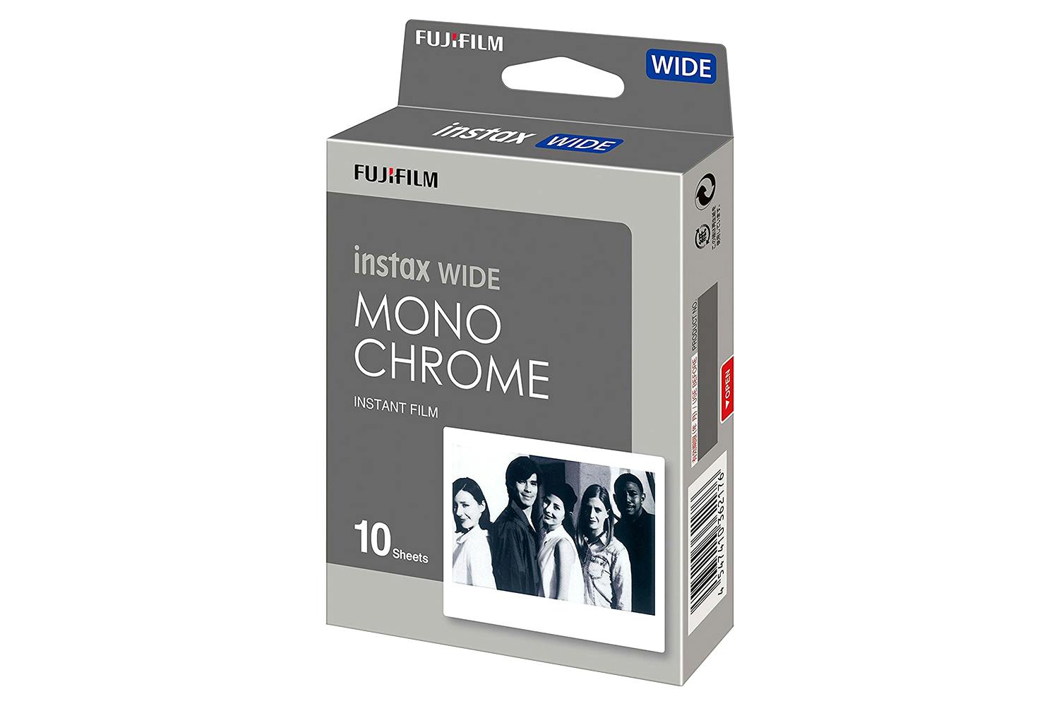 Fujifilm Instax Wide Monochrome Instant Film contains 10 sheets of instant black and white film that is compatible for use with the Fujifilm Instax Wide series of cameras. This film features neutral gray tonality and normal contrast with natural shadow and highlight response when used under daylight or electronic flash lighting conditions.
