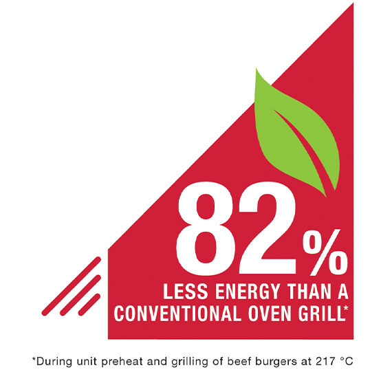 - 88% less energy than a conventional oven grill