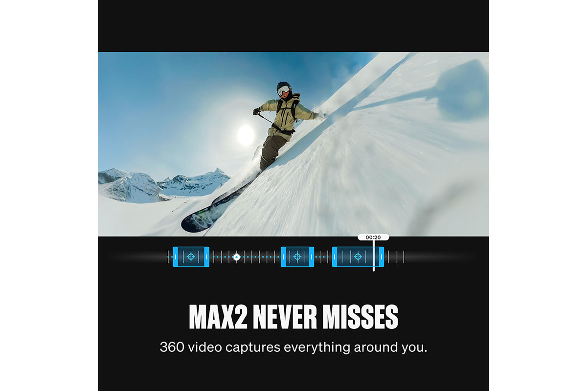 MAX2 delivers True 8K, resulting in up to 21% more resolution than the competition. [1] This means sharper detail and unmatched image quality you only get from GoPro. Capture everything around you in 360 video while completely erasing your extension pole from the shot. You’ll be able to create immersive point-of-view footage, selfies, follow-cam footage and more from the same video. Capture the scene in front of you and your reaction at the same time without worrying about where the lenses are pointed - even in extreme conditions. MAX2 is tough and durable with replaceable lenses. [2] Just swap in a new one if a lens is damaged. After recording, automatically play back your footage in POV or Selfie mode or use the GoPro Quik app’s powerful, yet simple editing tools to Reframe your footage into shareable 4K videos. Go vertical for TikTok or widescreen for YouTube, change angles and perspectives, or add pro quality effects. Incredible image quality, GoPro durability and packed with endless creative possibilities. It’s more than a 360 camera. It’s 360…MAX’D.