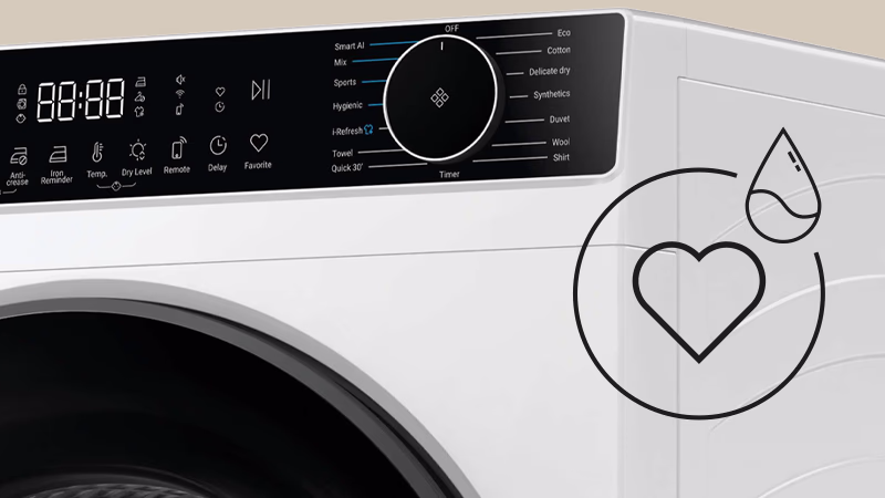 Smart AI automatically detects the fabric type and load size then adjusts settings for optimal drying performance.