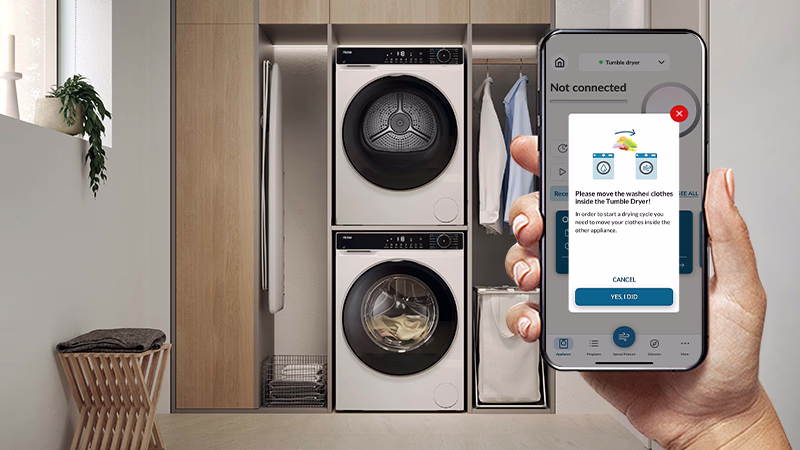 The hOn App helps you choose the ideal program based on your wash, spin cycle and load size and keeps you updated.