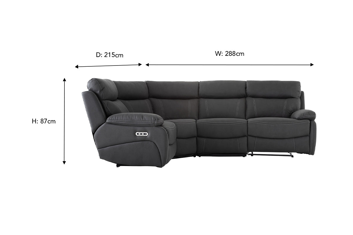 This plush and comfy electric recliner gives you everything you need for a relaxing night in. This simply modern stylish sofa features four deeply cushioned seats that are filled with a soft foam and pocket coil to ensure maximum support and comfort without compromise. It includes USB ports so you can charge your phone with ease from the comfort of your chair. The durable wood frame is upholstered in a gorgeous faux leather in dark grey that will complement any existing décor.