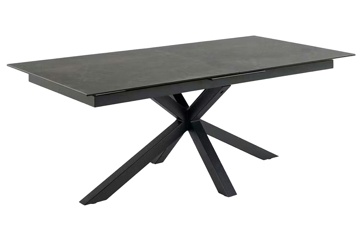 This table allows for intimate dinner settings and opens up with a hidden synchronous extension to allow for larger dinner parties. The ceramic tabletop both looks great and is super easy to clean and maintain. This exquisite top rests upon a similarly impressive x-frame black metal base. The overall look is one of contemporary cool that combines to create this modern masterpiece.
