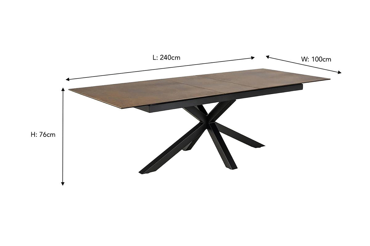 This table allows for intimate dinner settings and opens up with a hidden synchronous extension to allow for larger dinner parties. The ceramic tabletop both looks great and is super easy to clean and maintain. This exquisite top rests upon a similarly impressive x-frame black metal base. The overall look is one of contemporary cool that combines to create this modern masterpiece.