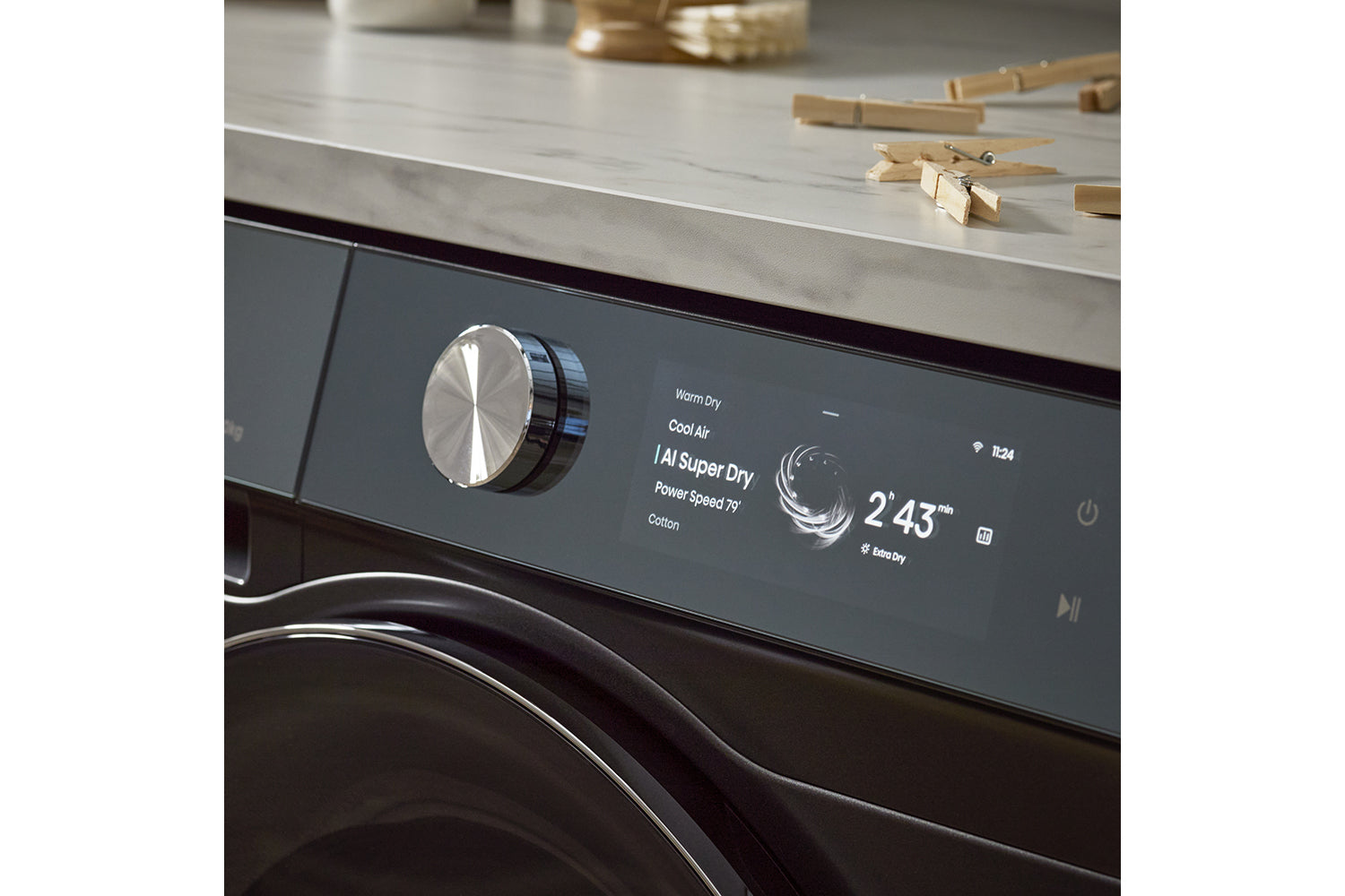 With a counter-rotating drum, clothes are reversed 360° in the drum. Meaning they’ll dry more evenly and be less likely to become entangled - reducing creases and damp sleeves.