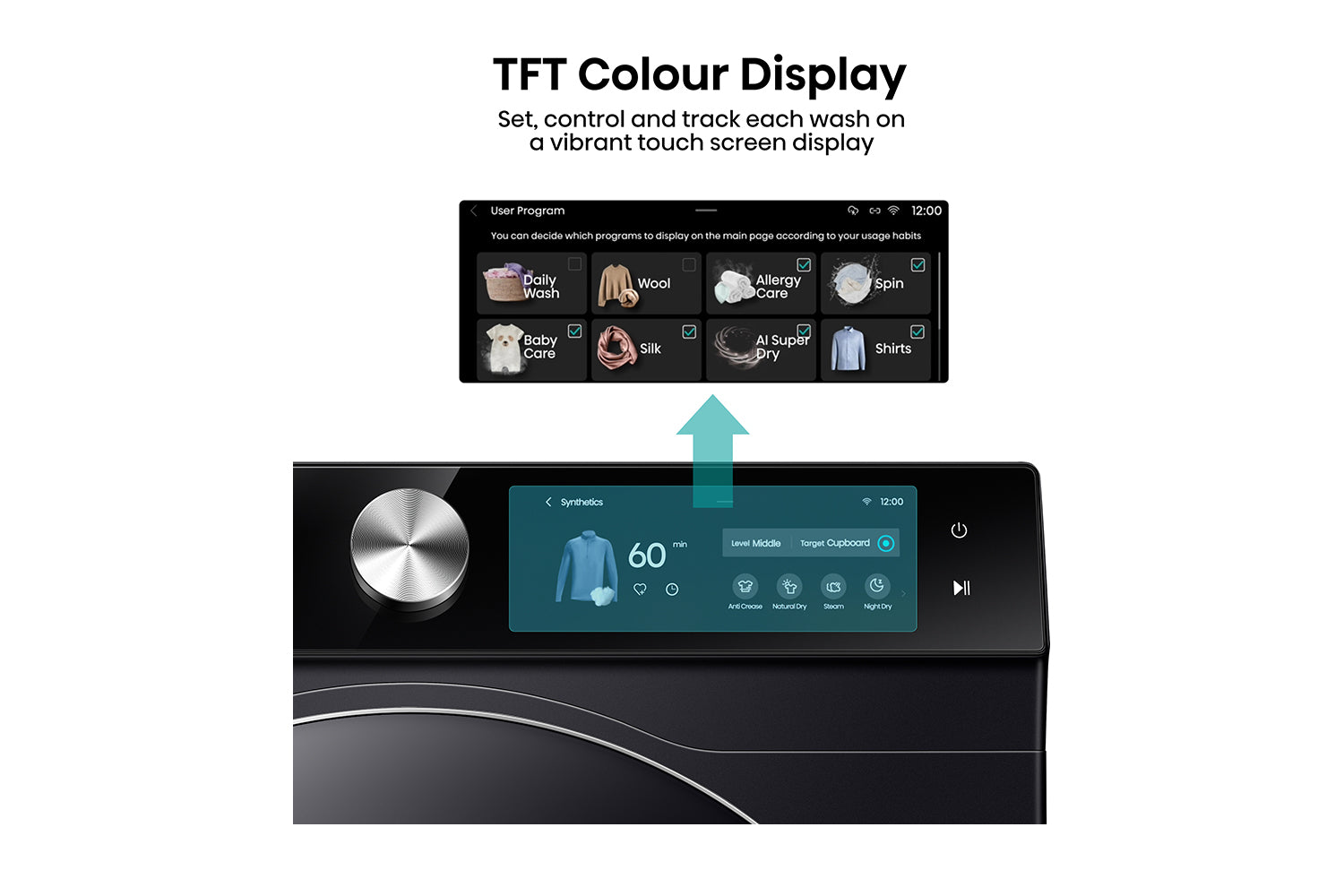 Featuring a 6.86-inch colorful touch screen, you can set, control and stay informed about each wash.