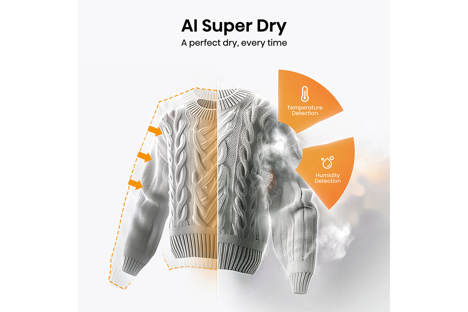 By sensing the humidity of your clothes, the dryer cleverly picks the correct drying cycle for each load. It also monitors the temperature, stopping when your clothes are perfectly dry to prevent them from being overspun.