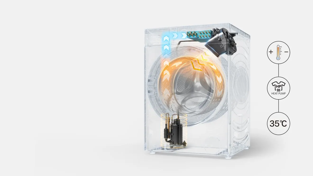 Step into the future of laundry with Hisense heat pump washer dryer. Its closed-loop heat exchange system recycles energy for superior efficiency, while intelligent temperature management gently preserves fabric life. The emission-free drying process locks heat internally, delivering both eco-conscious performance and lasting garment care.
