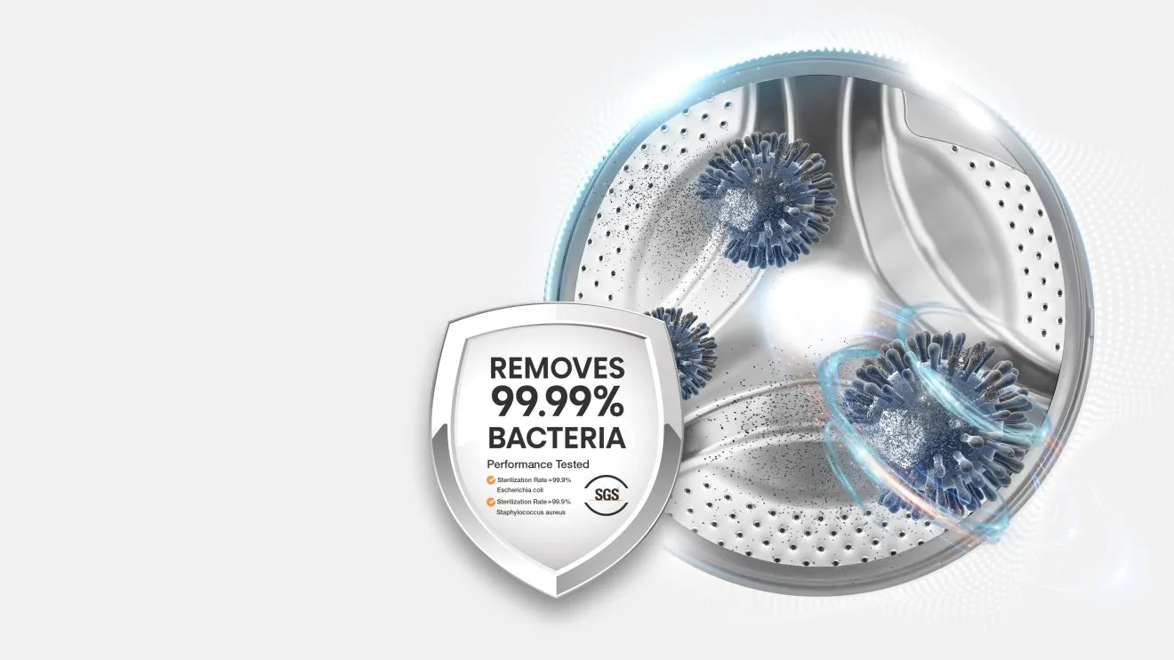 Activate the machine and observe as steam is released from the bottom of drum. The high-temperature steam thoroughly penetrates the clothes, helping to eliminate 99.99%* of bacteria. 5i also comes with a set of features, including Baby Care and Sterile Rubber Seal, to ensure health of your loved ones.*Testing done by SGS on Staphylococcus aureus and Escherichia coli on Allergy Steam mode. Individual results may vary.