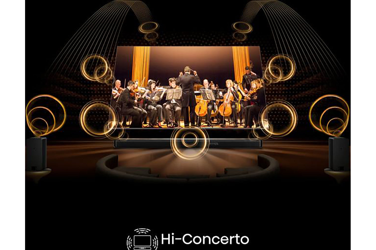 Embraced by surround sound from both your tv and soundbar. With hi-concerto, both devices work in tandem, building up a simple home theater without the fuss of additional cable or hardware.