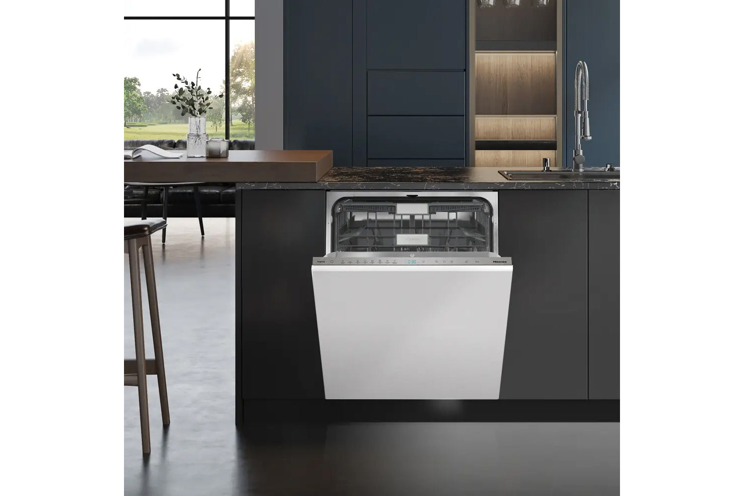 This Hisense dishwasher has a special night programme that works at two dB less than normal, which means quiet