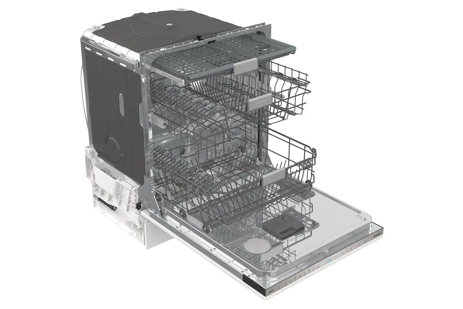 This Hisense dishwasher effectively washes and dries even the dirtiest dishes, regardless of size, type and material. Its quiet, reliable, and easy to load.
