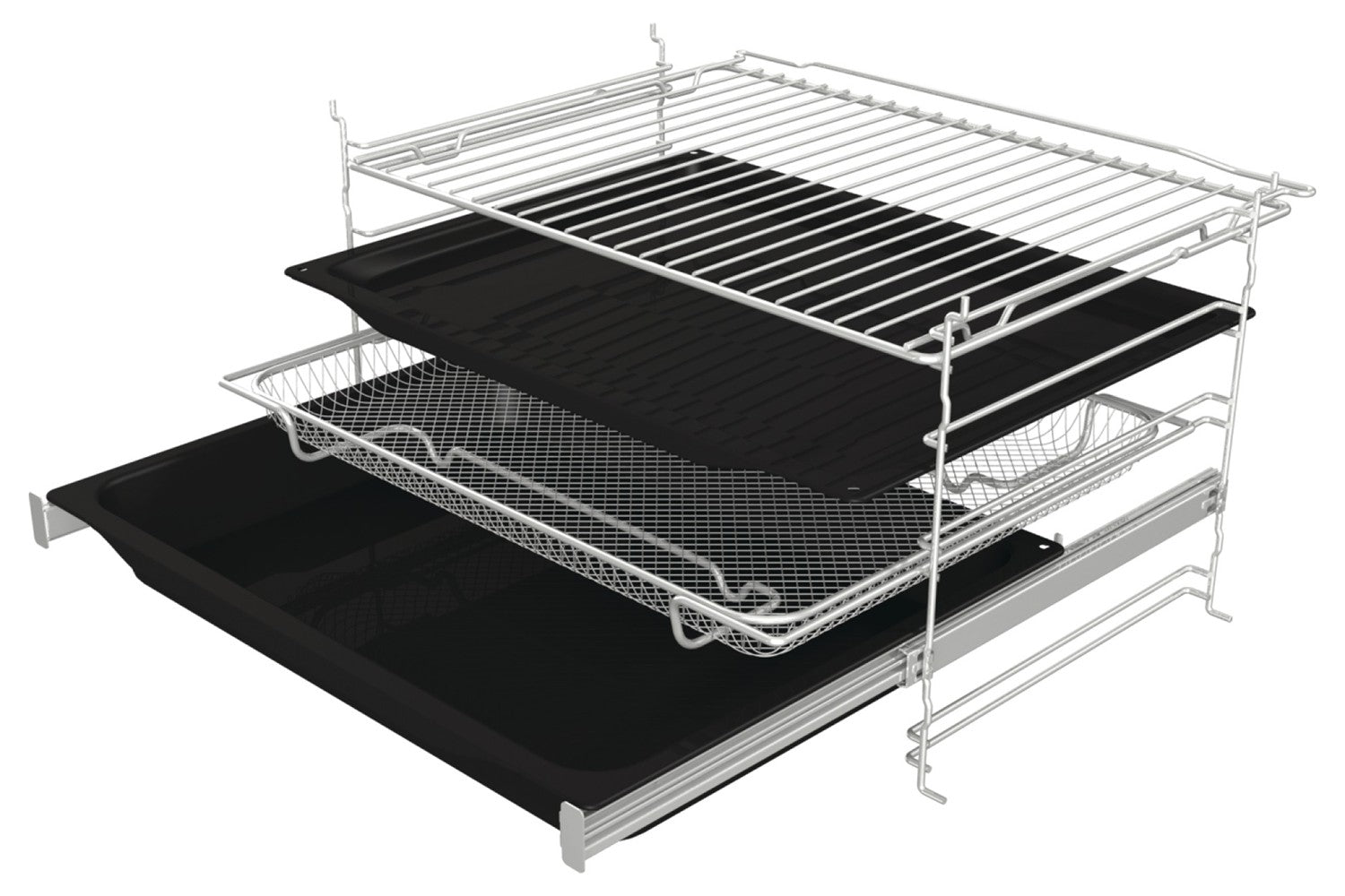 Now that the pyro-proof guides can stay inside while pyrolysis is active, you have one less item to worry about when cleaning. These pyro-proof fully extendable telescopic guides make getting things out and in the oven easier, ensuring trays slide out with minimal effort and firmly support the weight of dishes when fully extended.
