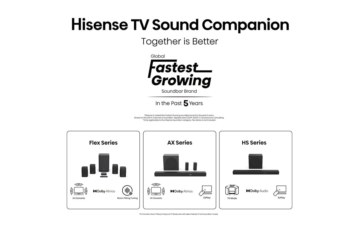 Hisense Soundbar is designed to work in perfect harmony with Hisense TV. Features such as Hi-Concerto, TV Mode, Room Fitting Tuning and EzPlay create a seamless and unified audio-visual experience. *Hi-Concerto Room Fitting Tuning and TV Mode work with select Hisense TV and Soundbar models.
