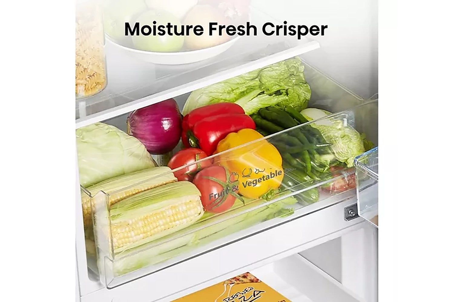 The fresh crisper provides enough space to store fruit and vegetables, and its ideal temperature perserves the foods freshness and aroma. The transparent design enables easy overview of the content.