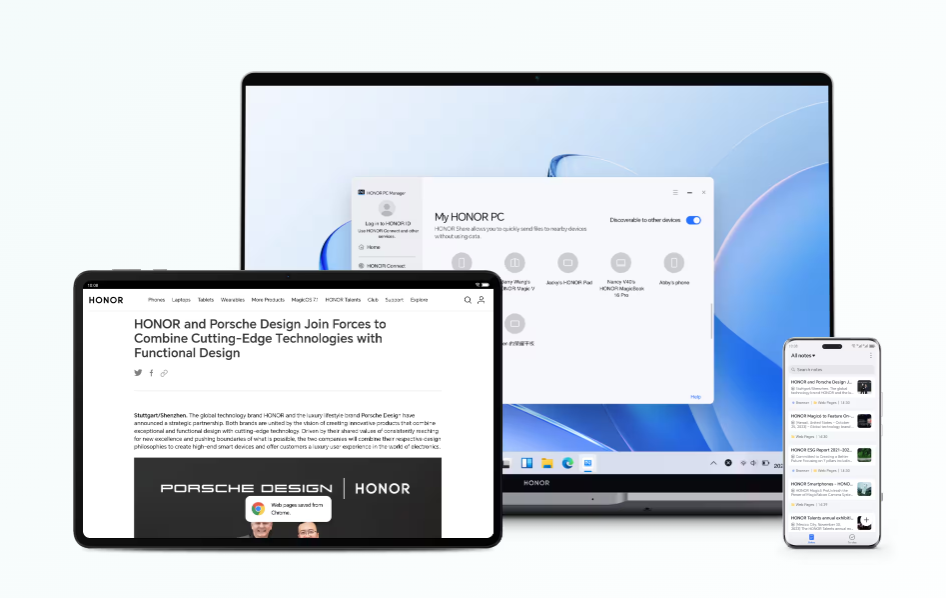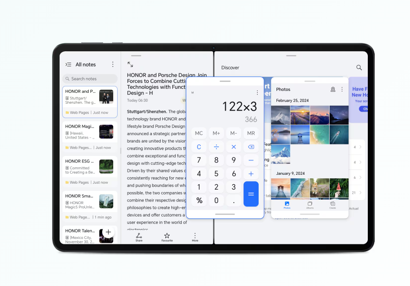 Honor Notes can keep your favorite blogs, web links, and scenarios of different APPs for you. The multi-device collaboration allows your tablet notes to be synchronized to your PC and phone for fascinating creativity. [4]