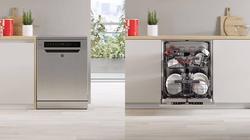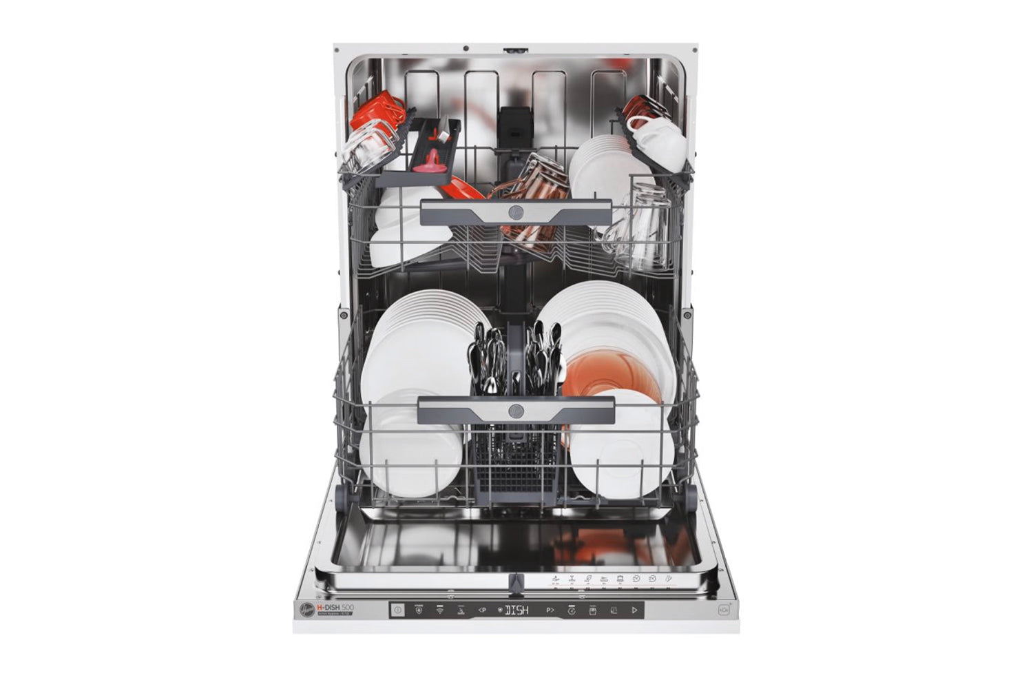 The new hoover H-Dish 500 is capable to perfectly wash, sanitize and dry any kind of kitchenware, even the most delicate. It is powered by the innovative active hygiene protection system: a powerful treatment which sanitizes your dishwasher as well as your dishes removing up to 99,9% of virus and bacteria.