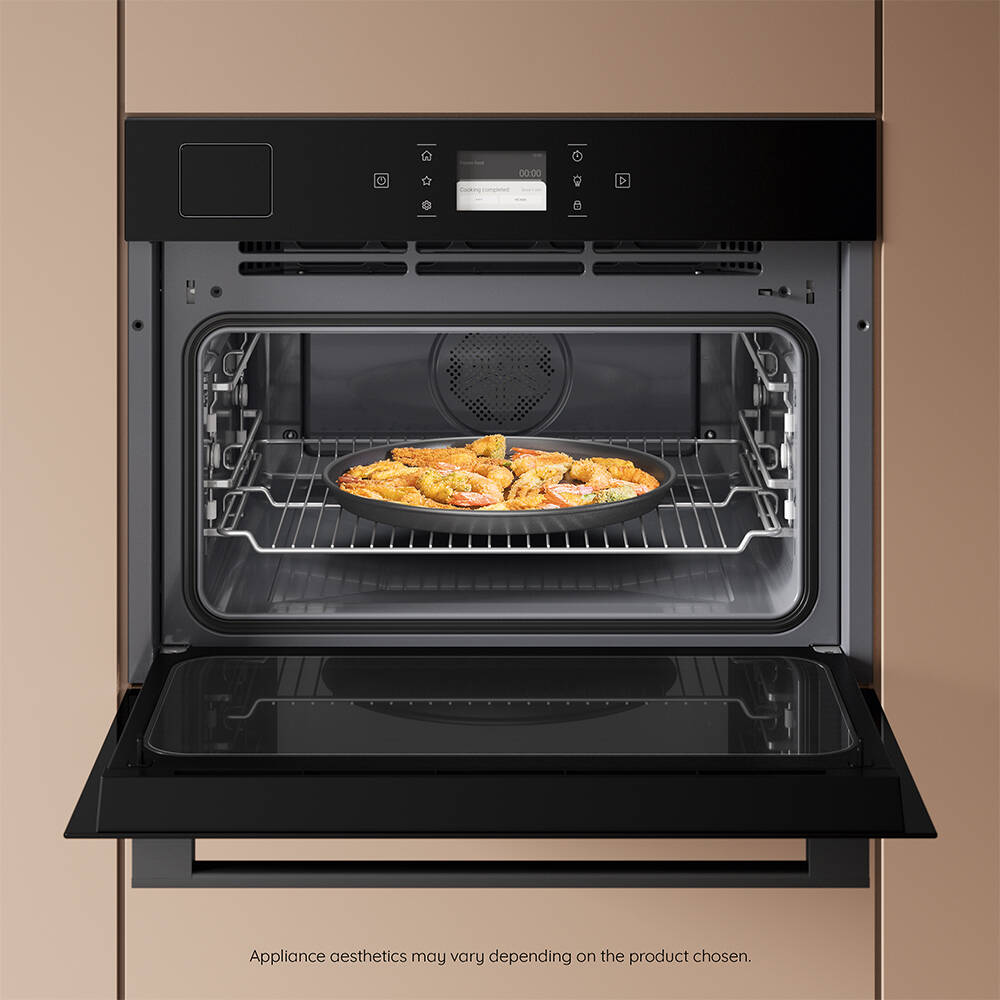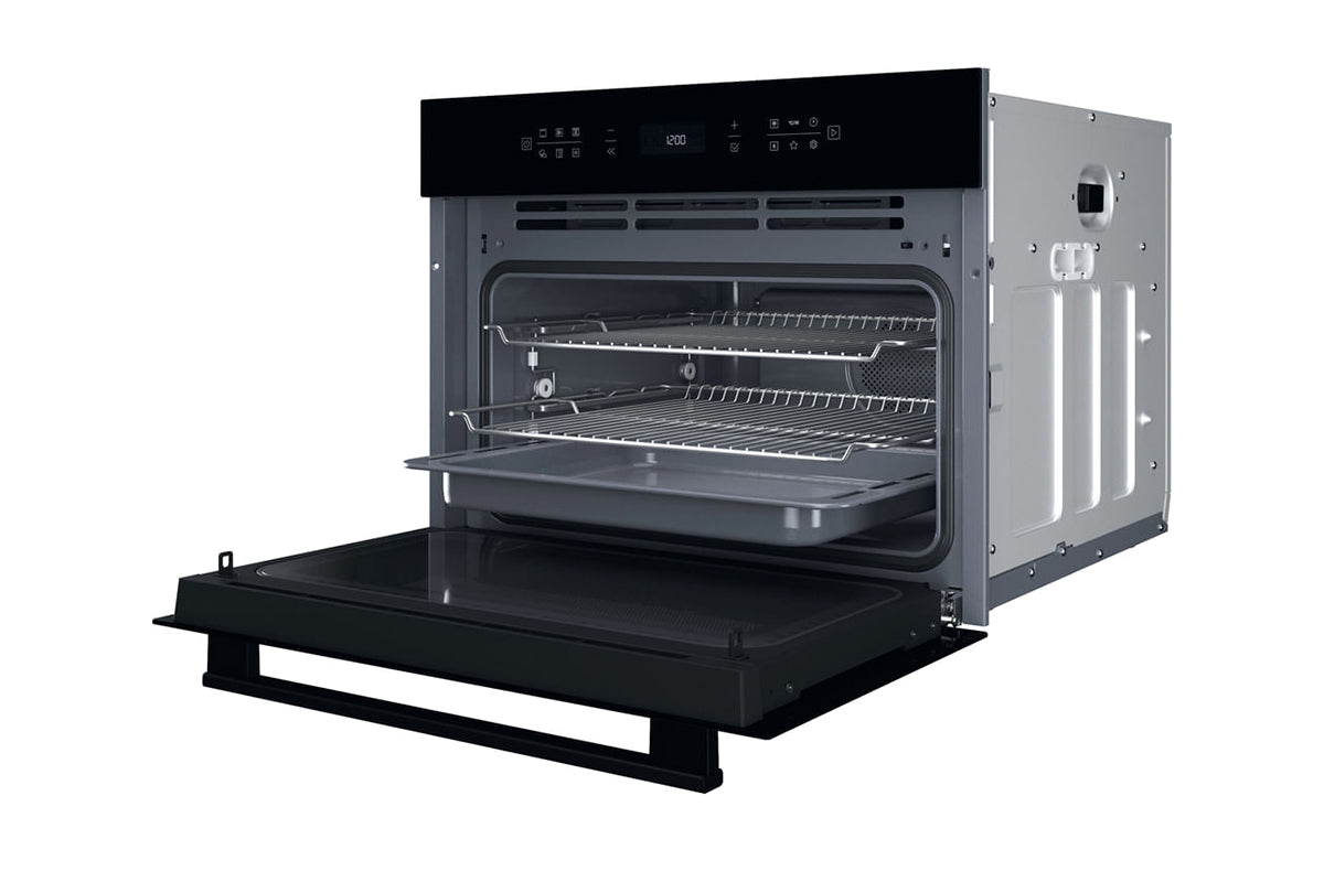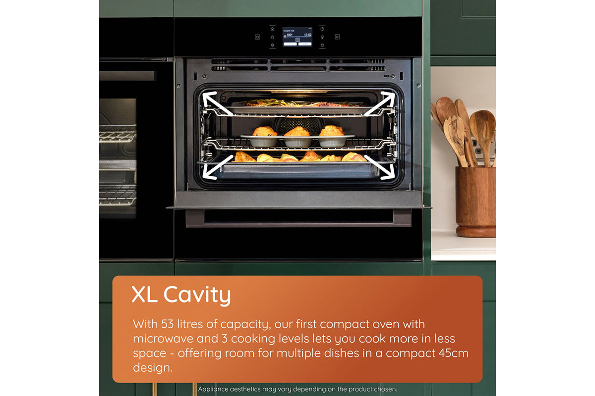 With 52 litres of capacity, Hotpoint first compact oven-microwave with 3 cooking levels lets you cook more in less space, offering room for multiple dishes in a compact 45cm design..