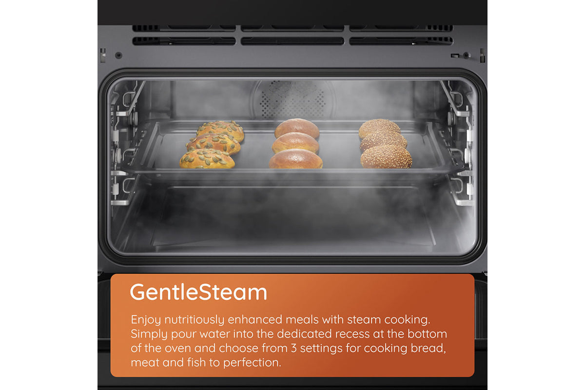 Combine traditional oven cooking with the benefits of steam for mouth-wateringly nutritious meals every time. Simply pour water into the dedicated recess at the bottom of the oven and choose from 3 steam settings to give you the perfect humidity levels for cooking bread, meat or fish to perfection.