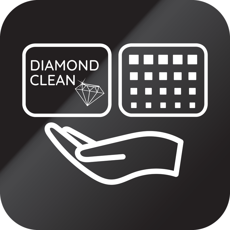 With DualClean you have two cleaning options: Pyrolytic Clean for a deep clean, burning away any tough stains at high temperatures. Or Diamond Clean to tackle everyday residue using steam.