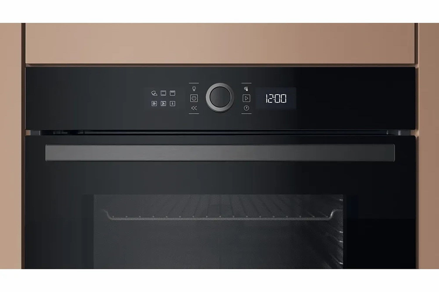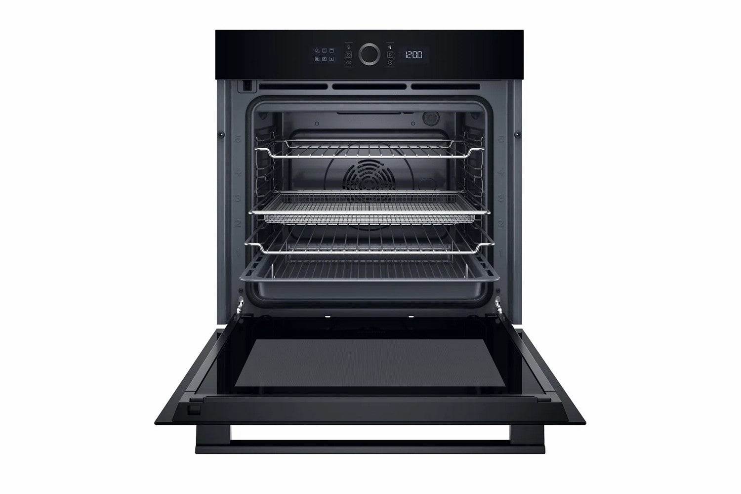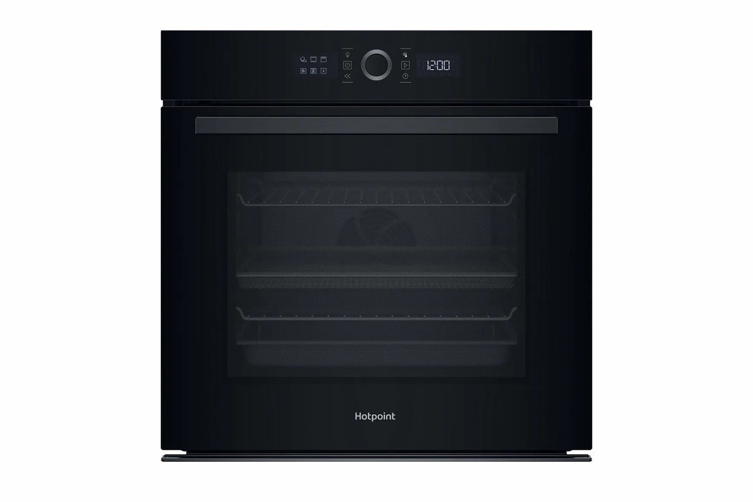 Transform your kitchen with this Hotpoint Class 4 oven, combining advanced technology and refined design for an enhanced cooking experience. Featuring a sleek black finish and an intelligent mono dial control, this oven offers 8 cooking functions for perfect meals every time. ActiveMultiFlow technology evenly distributes heat across the 73L cavity, allowing you to cook on 4 levels simultaneously without flavour transfer or rotating dishes. It saves up to 50% in cooking time and 45% in energy*— perfect for large meals or family gatherings. Craving crispy favourites? The Air Fry function gives a healthier crunch with up to 50% less fat**, and the dishwasher-safe tray makes cleanup easy. The Pizza function reaches 310°C for restaurant-style results in just 10 minutes***. Gentle Steam locks in moisture and nutrients for healthier meals. Pour water into the dedicated recess and choose from 3 steam settings for cooking bread, meat, and fish. The self-turning rotisserie attachment rotates large pieces of meat to self-baste and cook evenly. Cooking is effortless with MyMenu, which automatically selects ideal settings for 30 recipes, making meal prep a breeze. Cleaning is made easy with DualClean, offering two options: Pyro Clean for a deep clean that burns away tough stains, or Diamond Clean to tackle everyday residue using steam. This oven also boasts an A+ energy rating, offering all these features without worrying about your electricity bill.