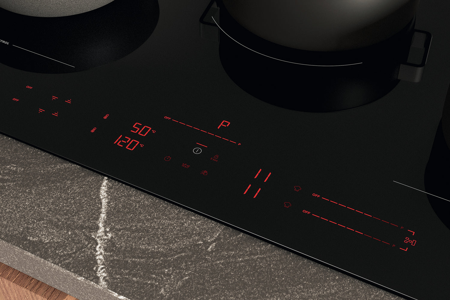 Join two cooking zones and obtain a wider area suitable to your larger pots or pans.