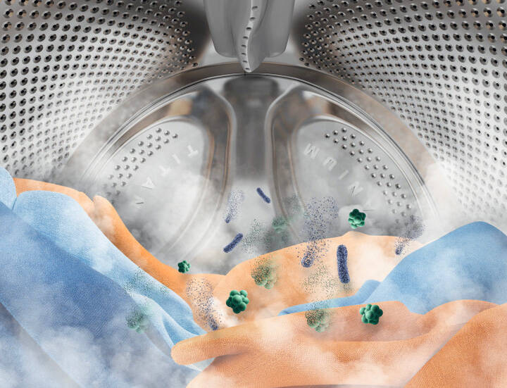 Steam Hygiene, endorsed by Allergy UK, provides the ultimate care and protection for fresh and clean laundry. Steam is used at the end of the washing cycle, removing up to 99.9%* of bacteria and viruses without chemical additives for total peace of mind. *Independently tested by Intertek on Rodent Protoparvovirus type 1, a representative virus, and for bacteria by Allergy UK on Cotton 60°C programme with Steam Hygiene option activated.