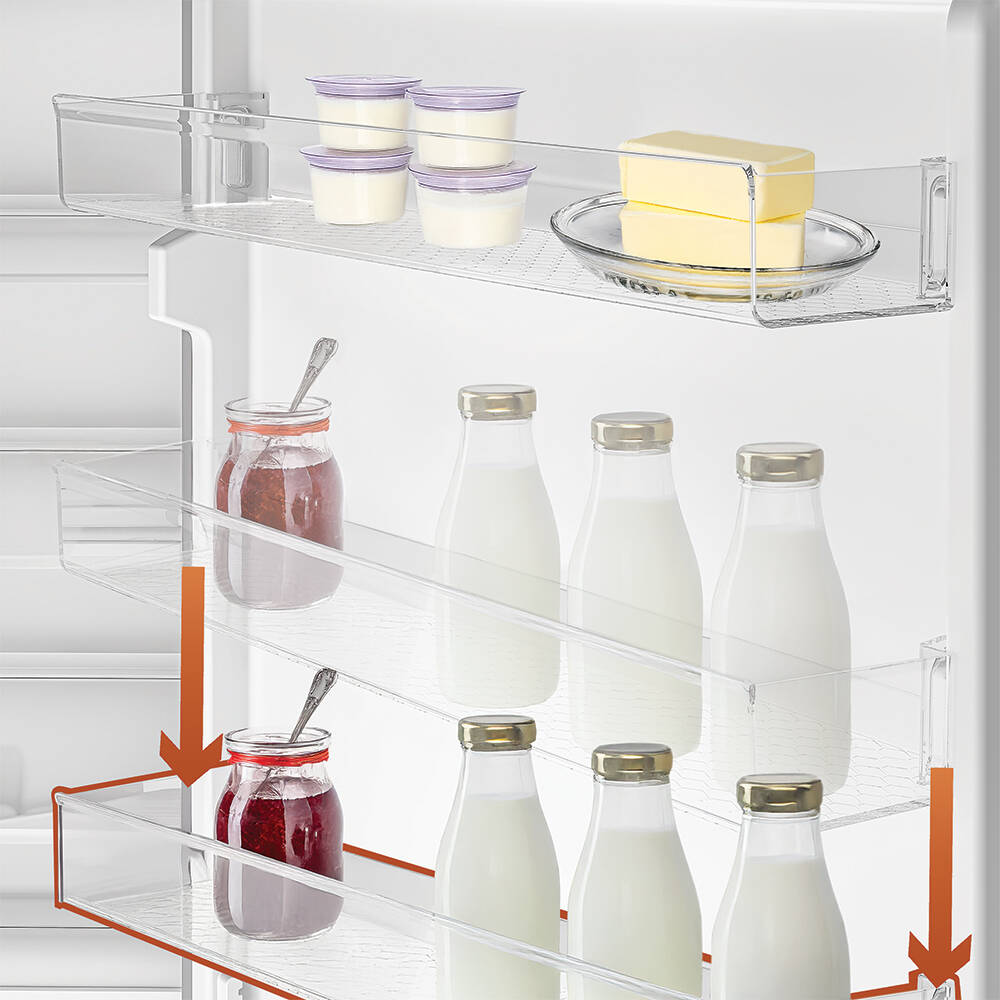 Enjoy flexibility when organising your fridge door with adjustable storage that can be easily moved and arranged to fit smaller and taller items.