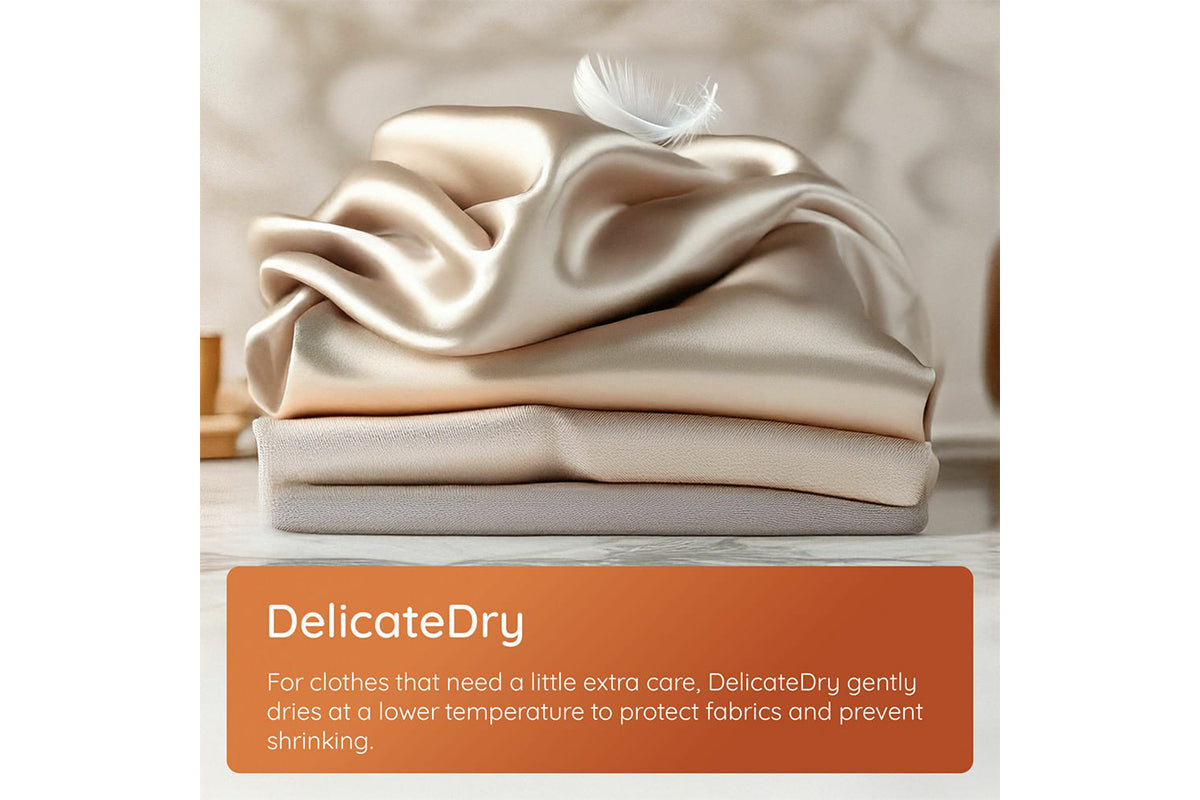 For clothes that need a little extra care, DelicateDry gently dries at a lower temperature to protect fabrics and prevent shrinking, helping your favourite items stay looking great for years to come.