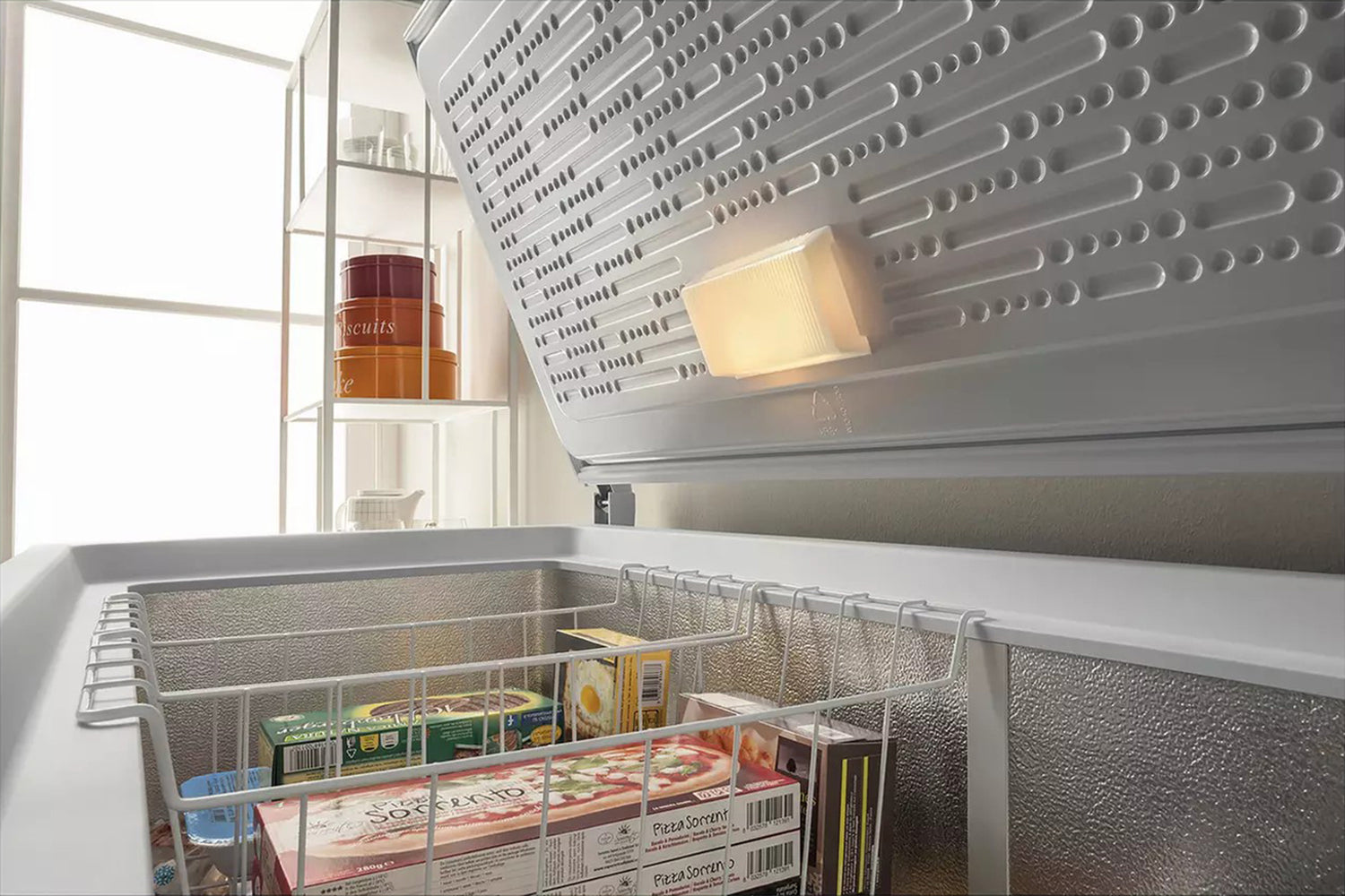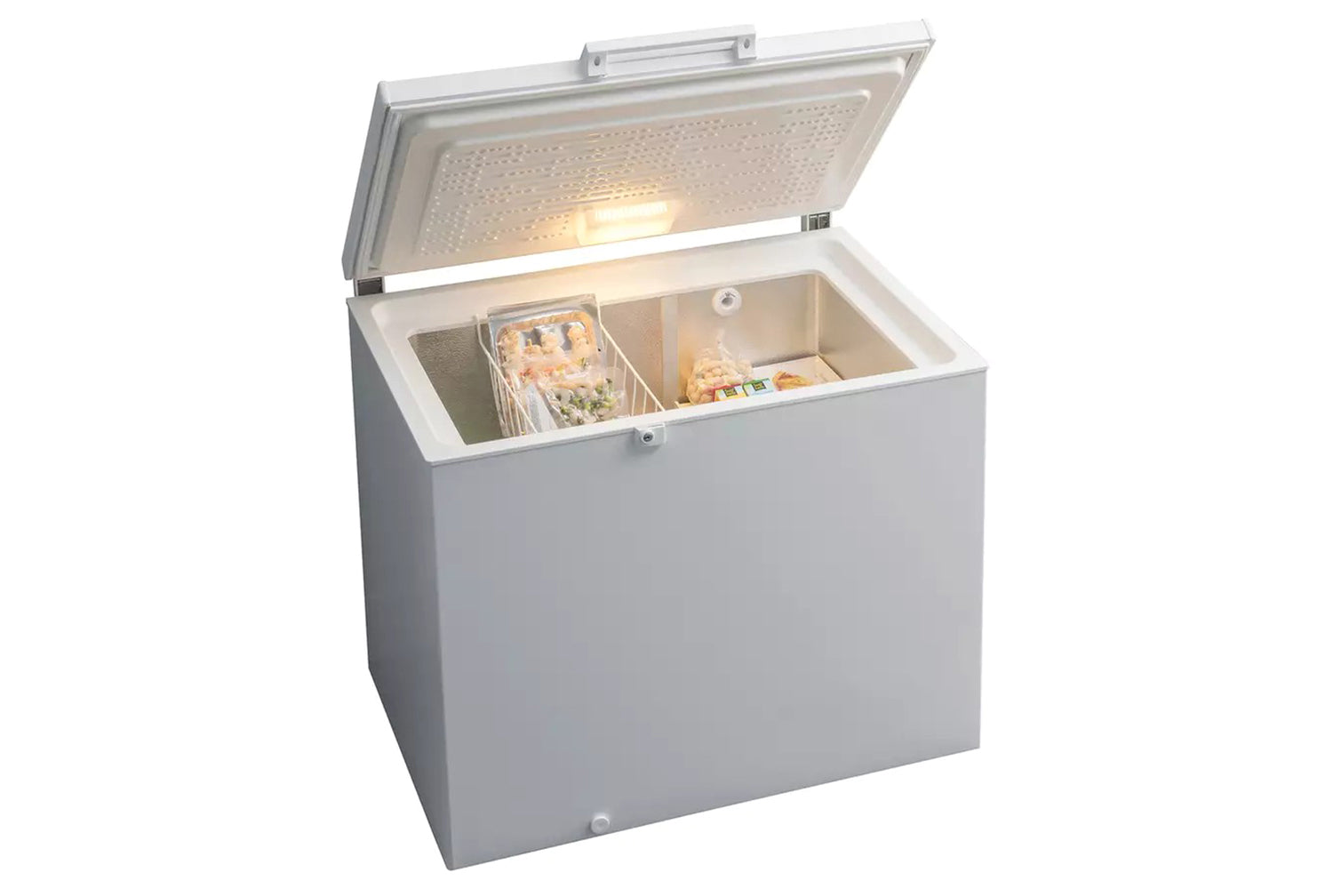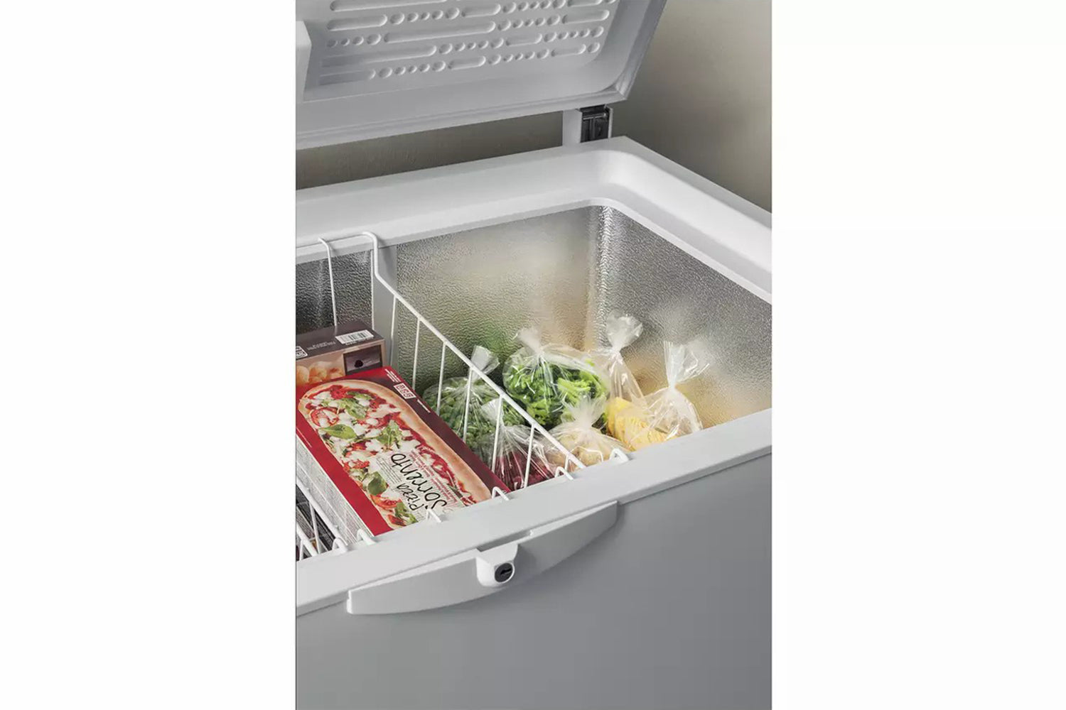 Enjoy a huge amount of storage space with the Hotpoint CS2A 400 H FM FA UK 1 Chest Freezer in white - perfect for providing extra freezer capacity in your outbuilding. With 390L of space and two storage baskets, there’s plenty of room for big food shops and when you’ve had a big cooking session. Featuring our Fast Freeze function, rapidly reducing the temperature within the freezer as new items are introduced. Not forgetting Frost Away which reduces ice formation by up to 55%, ideal for freezing large amounts of food without having the regular chore of defrosting. The innovative Frost Away technology exploits the temperature in the compressor and keeps the air flowing into the cavity through a special channel.