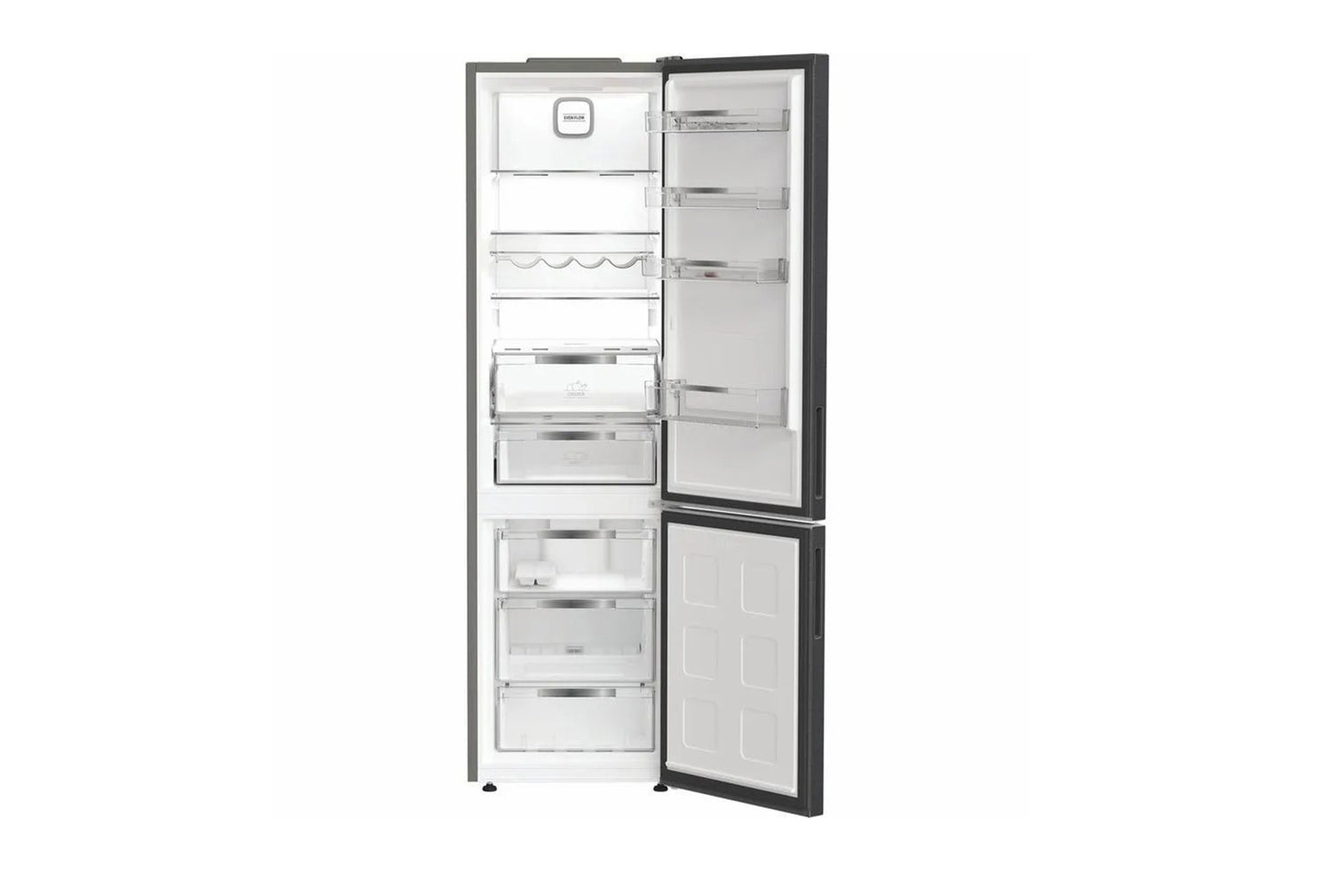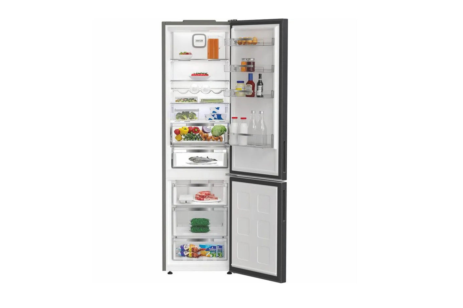 This freestanding Hotpoint fridge freezer offers a 70/30 split between fridge and freezer space, making it a great fit for busy households. With a generous 355L capacity—enough for 20 shopping bags—it’s ideal for your weekly shop with room to spare. Finished in sleek black with an intuitive touchscreen display, it adds a modern touch to any kitchen. Smart tech works hard to keep food fresher and reduce waste. Dual No Frost uses two evaporators to prevent ice and moisture build-up, so you’ll never need to defrost. The quiet Inverter Compressor quickly restores the perfect temperature after door openings, helping save energy and preserve food quality. Inside, Even Flow cooling distributes air evenly across every shelf, keeping food crisp and flavourful for up to 30% longer*. The Fresh Shield compartment maintains ideal humidity while preventing condensation—helping your five-a-day stay fresh for longer**. The freezer includes a Fast Freeze function to lock in freshness quickly. And with a handy fridge door alarm to prevent mishaps, this fridge freezer is built for real-life routines.**According to internal tests conducted by Beko Corporate on fresh lettuce, ProFresh crisper technology can preserve freshness longer compared to standard crisper based on the K70561 cabinet.