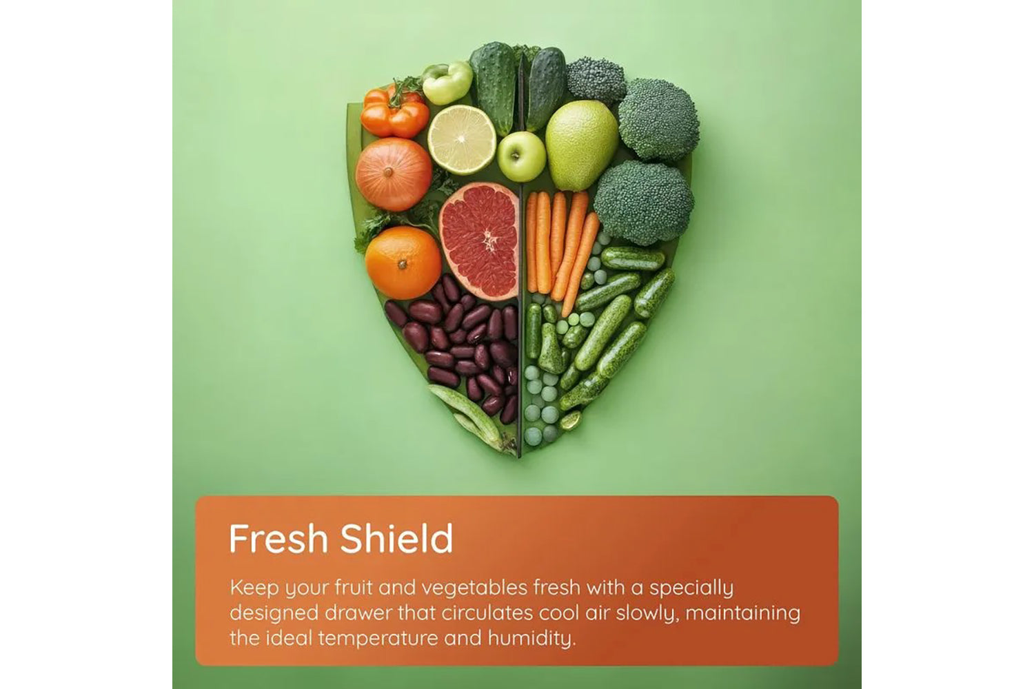 Even Flow technology keeps your favourite fruit and vegetables fresh and crisp for up to 30%* longer, thanks to consistent, cool air being gently distributed across every shelf. It helps reduce moisture loss, while maintaining a stable temperature to lock in the taste and nutrients of your food.