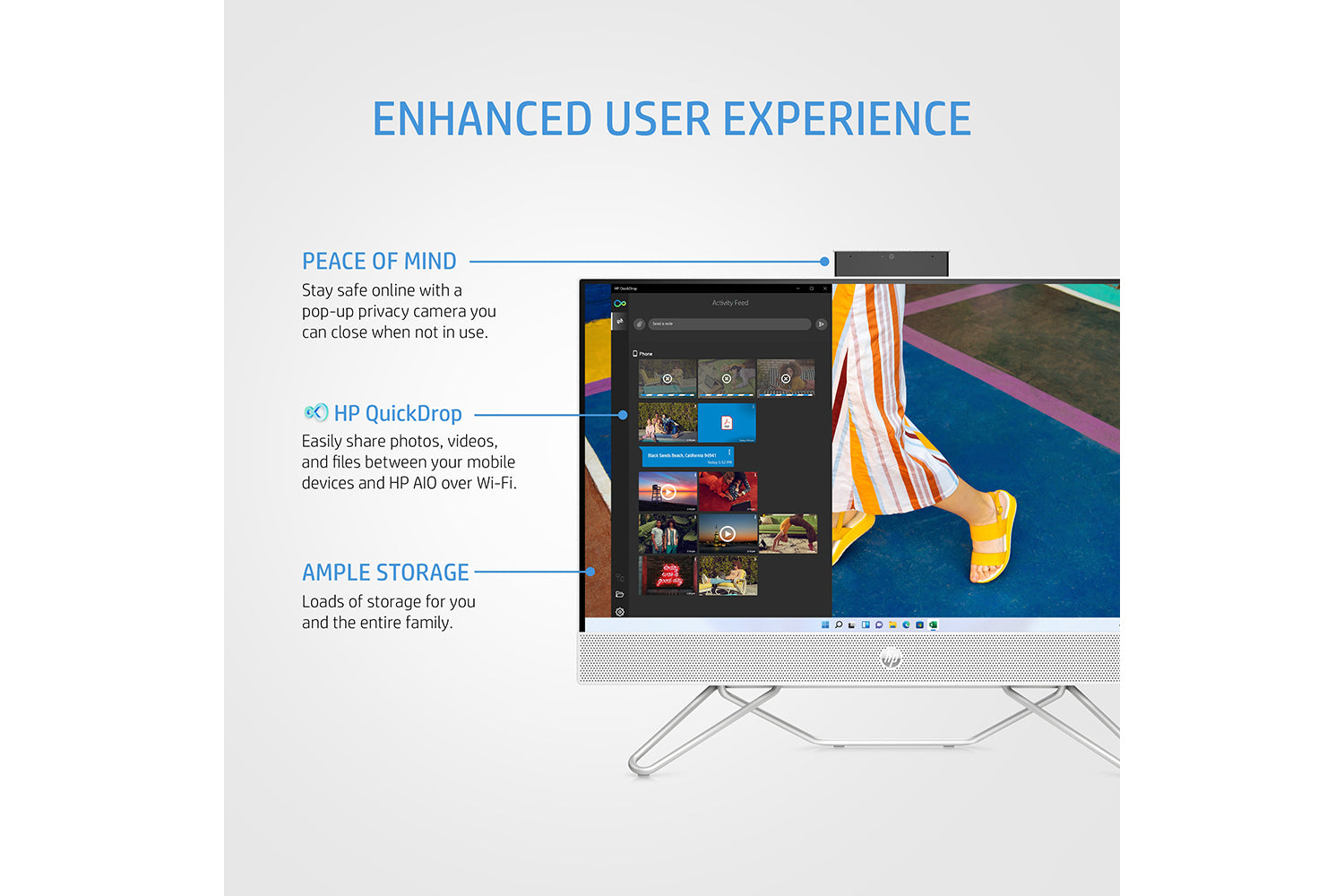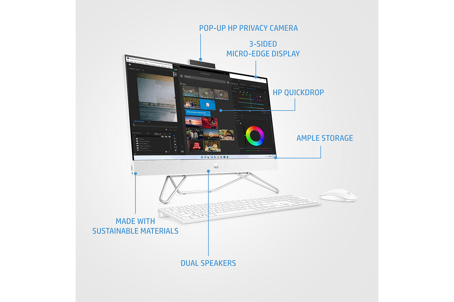 The HP All-in-one blends the power of a desktop with the beauty of a slim, modern display.