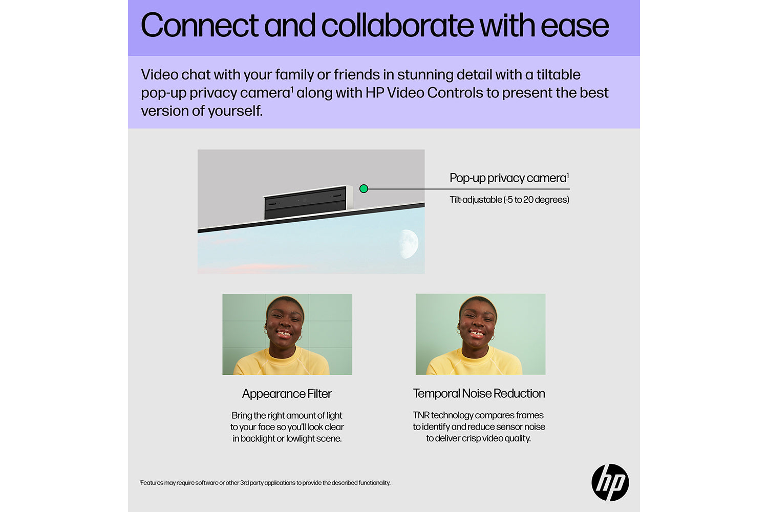 Connect seamlessly with a tiltable pop-up privacy camera 3 and advanced noise reduction software.