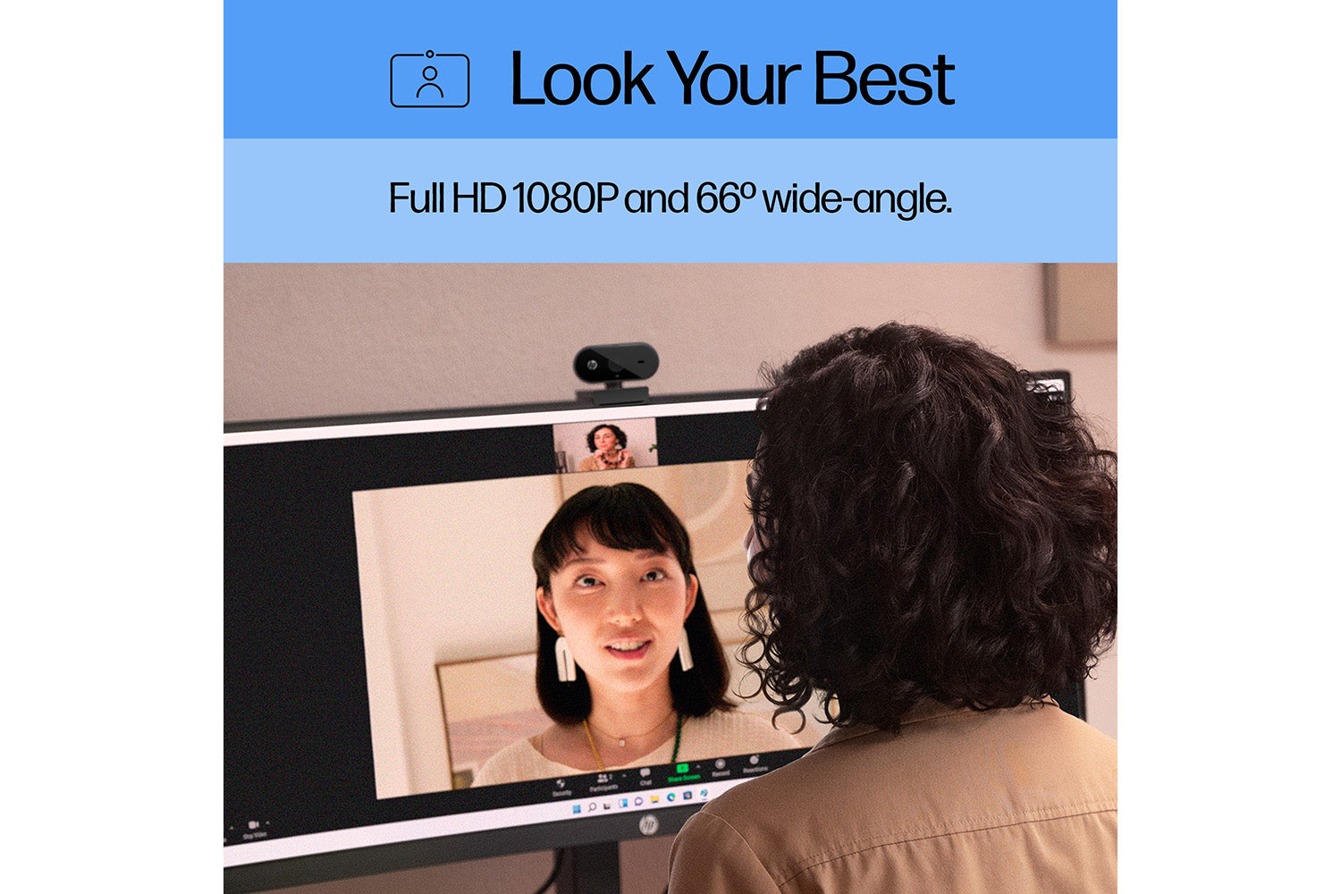 Immerse yourself in full HD 1080P[3] With an integrated mic. Enjoy a crisp image and clear sound that make you look and sound good, coupled with a 66º wide-angle webcam for a natural conversational feel and room for others to join in. It works instantly and easily with zoom, microsoft teams, and other video chats.
