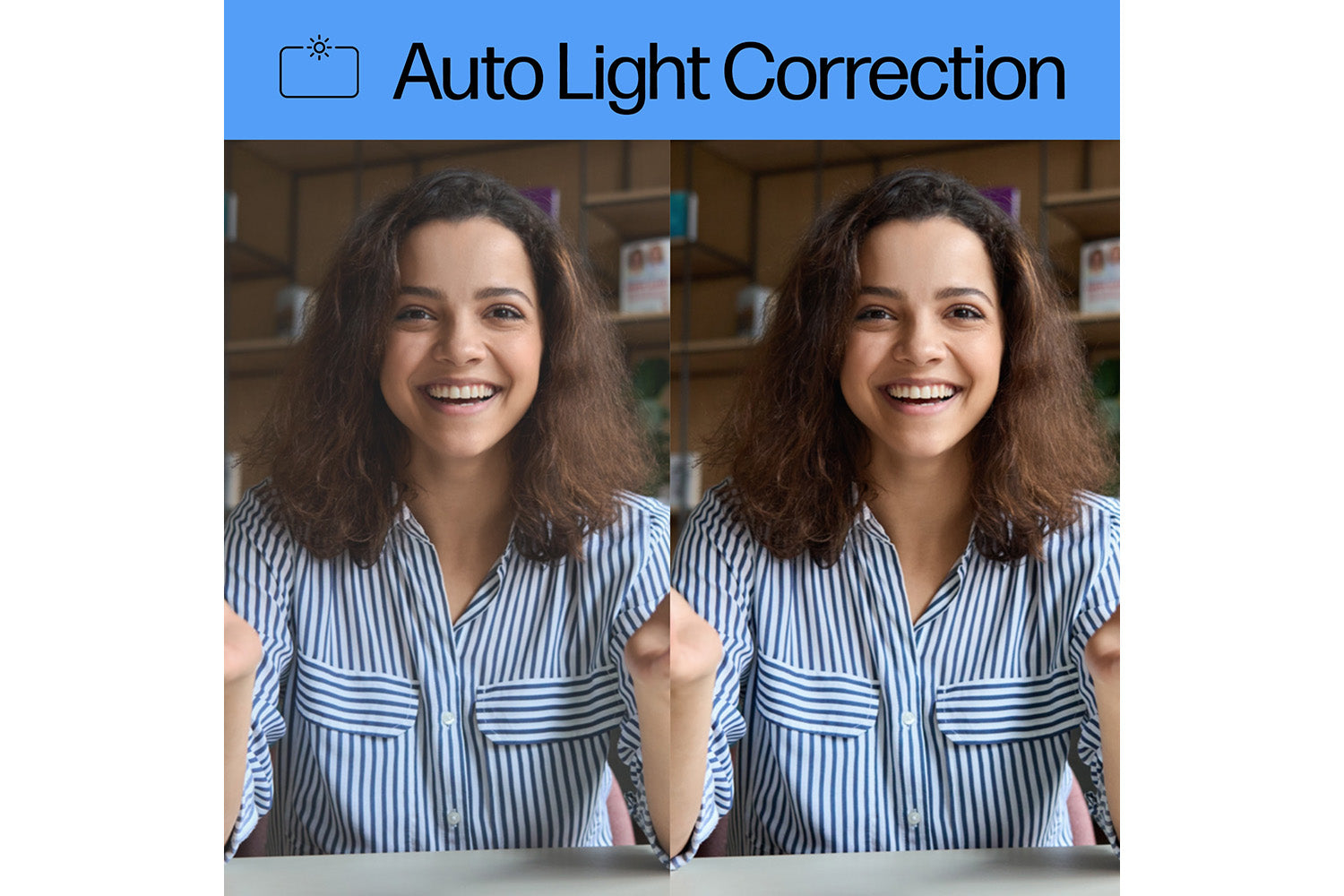 Just plug in the USB-A, clip on the webcam, and it will auto-adjust to the light around you, easy. Wherever you go, it'll always adapt to your surroundings to keep you in the picture.
