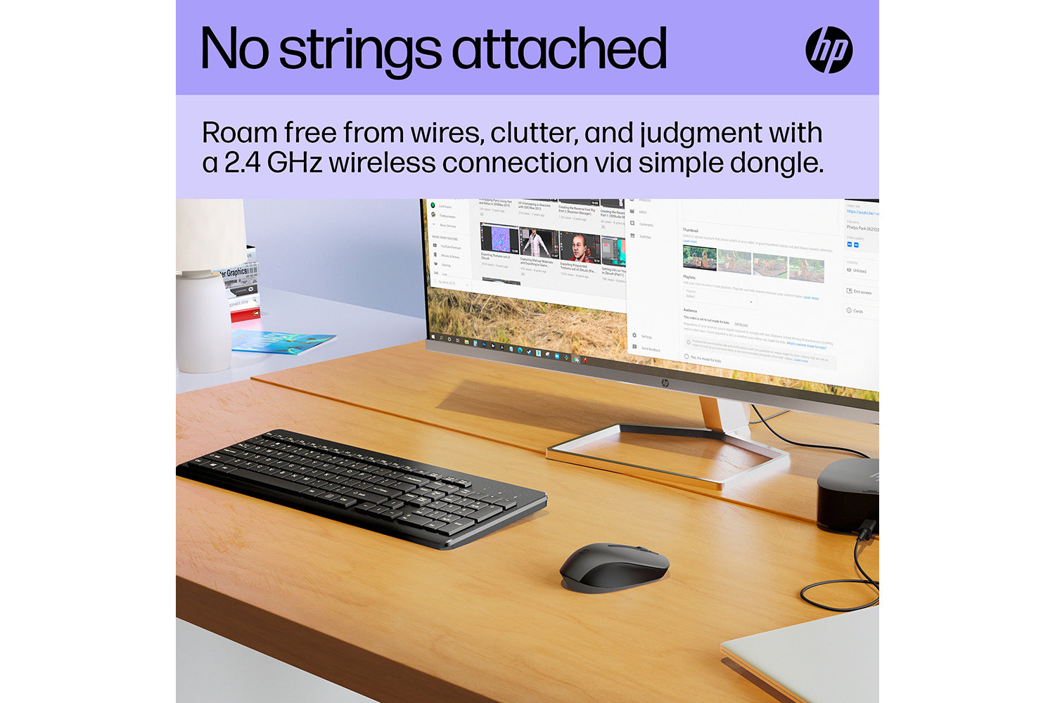 This keyboard and mouse are ergonomically designed to fit your natural comfortable position. Left, right, and scroll wheel mouse buttons keep your motions in control. With its 1600 DPI optical sensor, this mouse works on almost any surface with astounding accuracy. Stash it in your bag with your laptop and you'll be good to go.